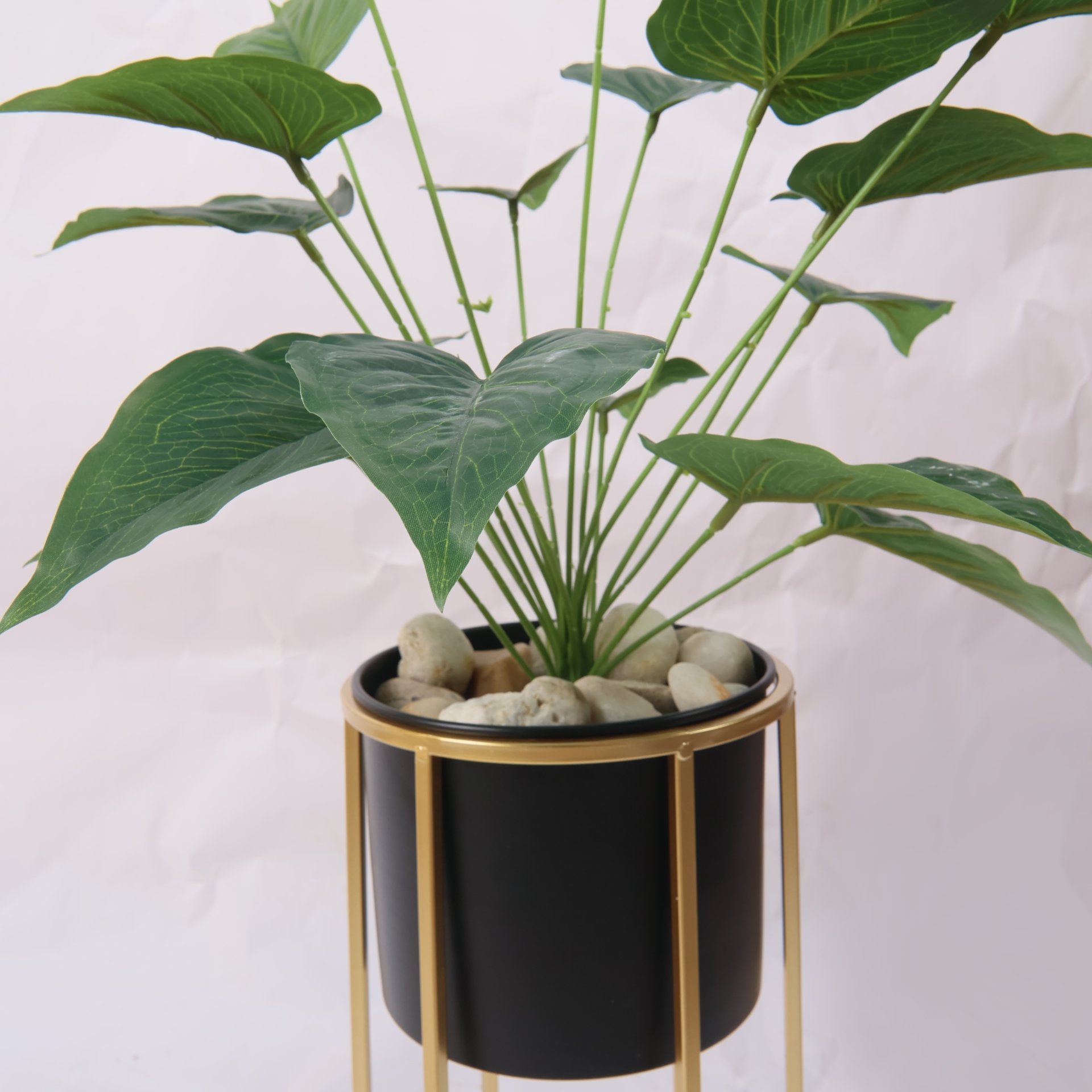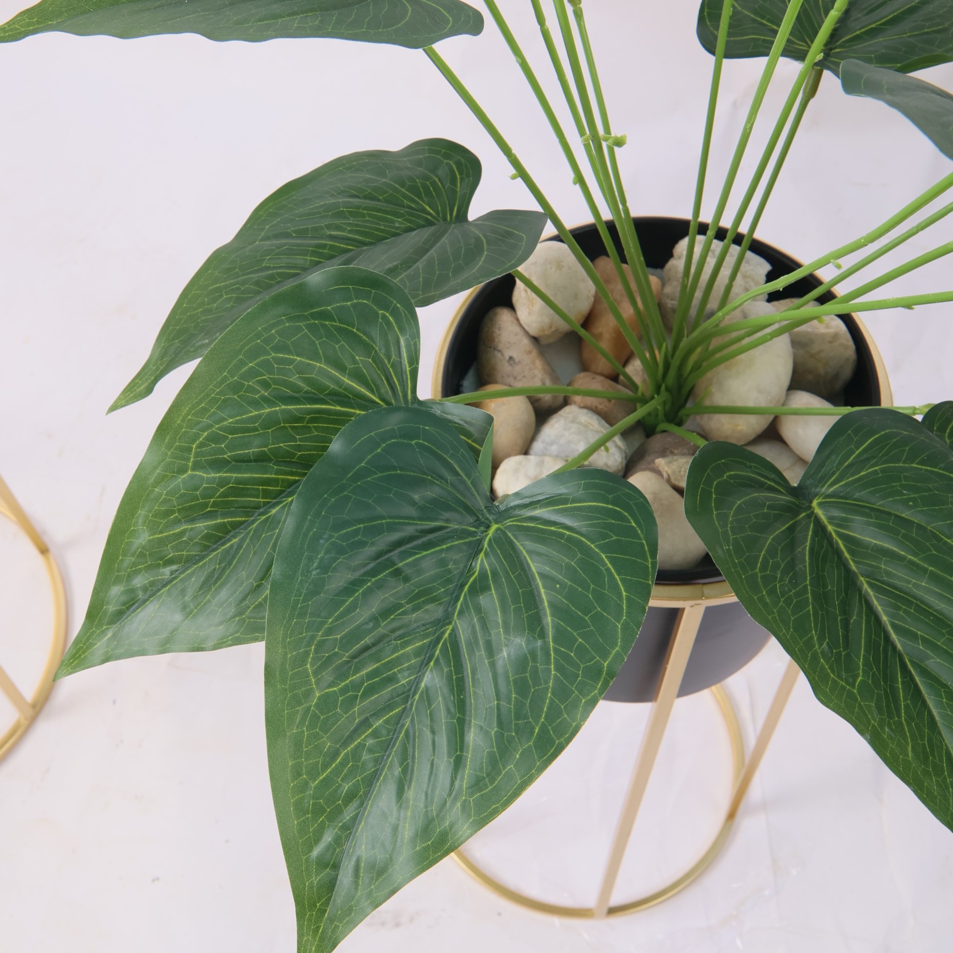 نبات صناعي بقاعدة معدنية ذهبية طقم قطعتين
