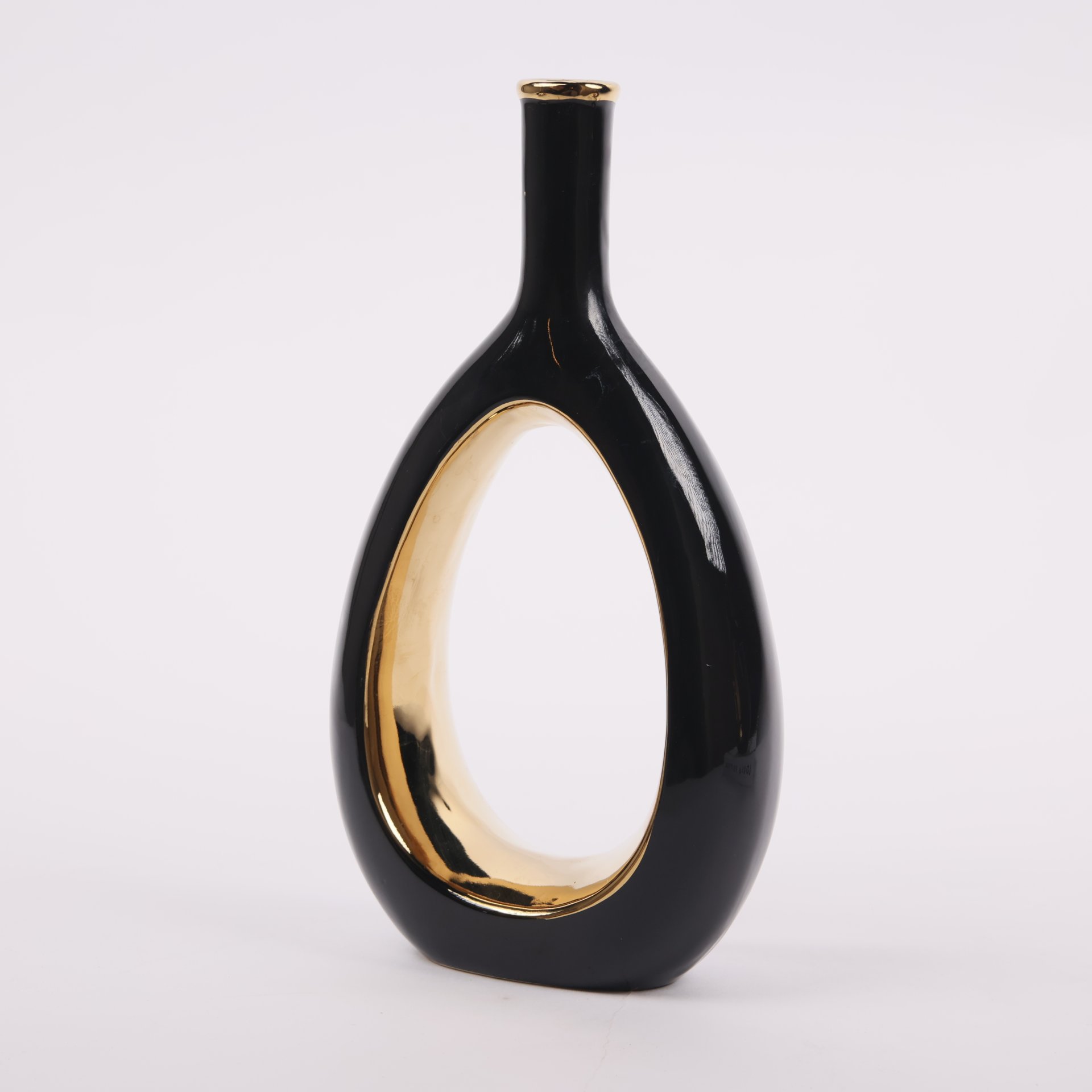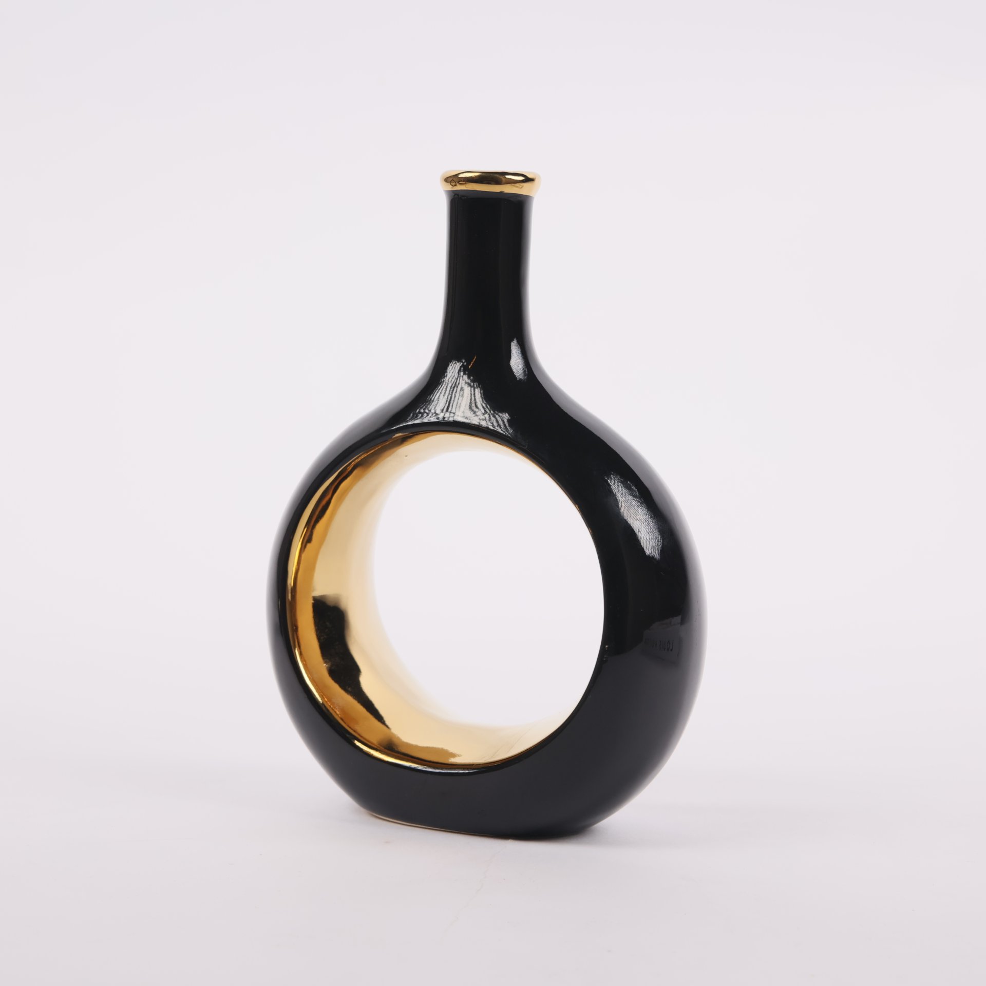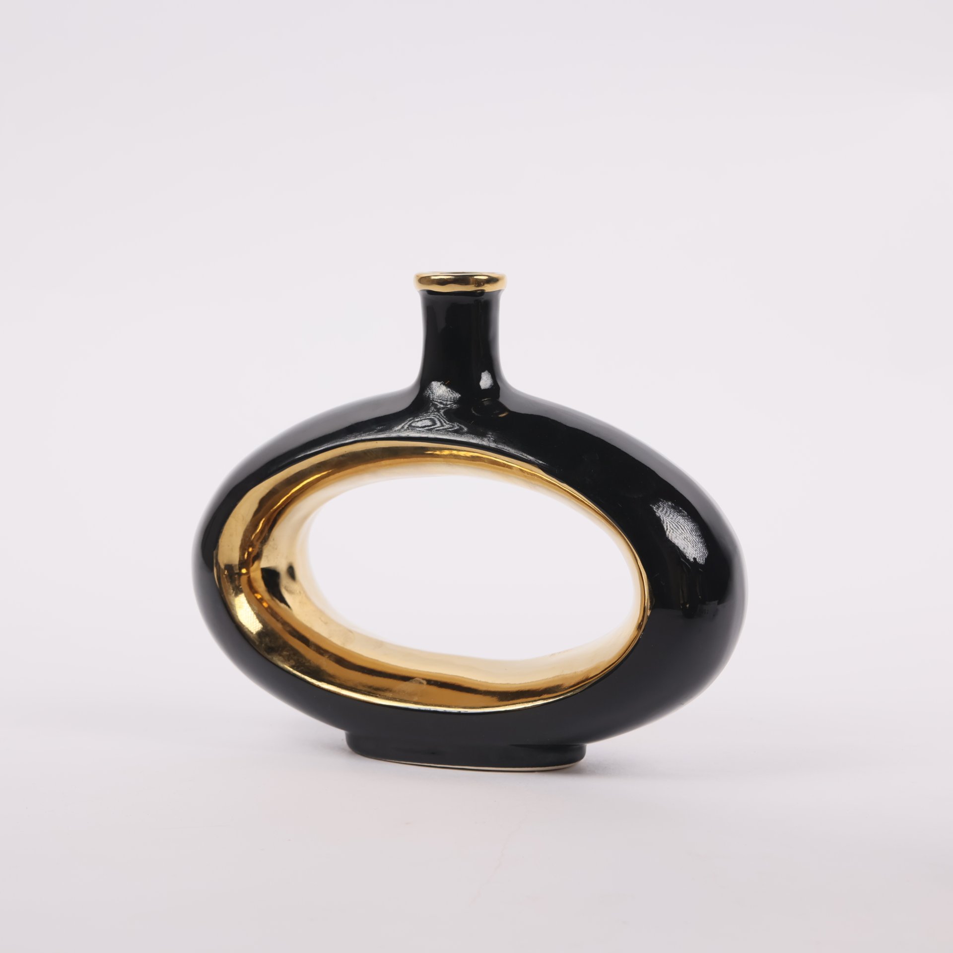 مزهريات سيراميك أسود بلمسة ذهبية عصرية طقم من 3 قطع
