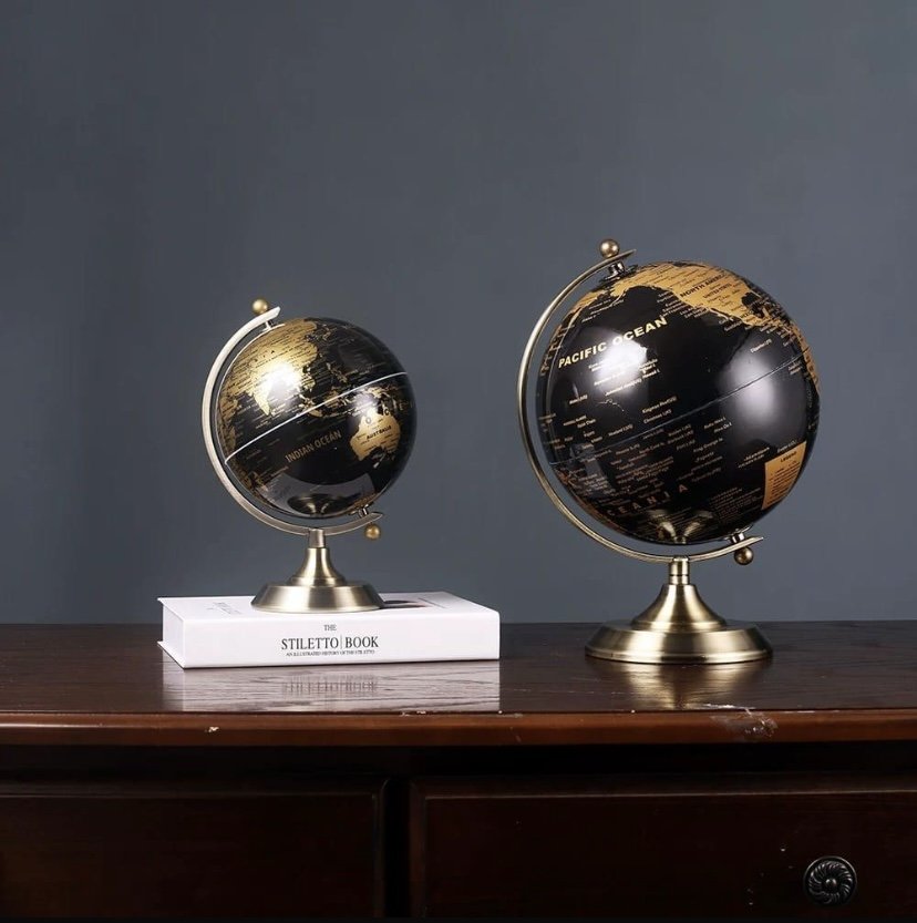 كرة أرضية ديكورية كبيرة باللون الأسود والذهبي