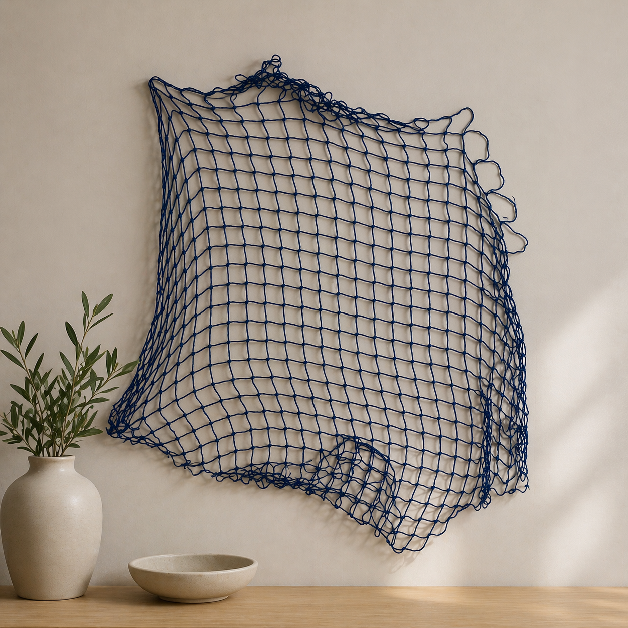 امنح منزلك أجواء بحرية مميزة مع شبكة الصيد الزرقاء المصممة للديكور الحائطي. تتميز بلون أزرق غني وتصميم شبكي كلاسيكي يضيف عمقاً وحركة للجدار، ليمنح المكان طابع الشاليهات والبيوت الساحلية الهادئة. يمكن تنسيقها مع الأصداف، نجمات البحر، الصور، أو الإضاءات الخفيفة لإطلالة أكثر تميزاً. مثالية للشاليهات، الكافيهات، غرف الأطفال، البلكونات، أو أي مساحة بطابع صيفي.