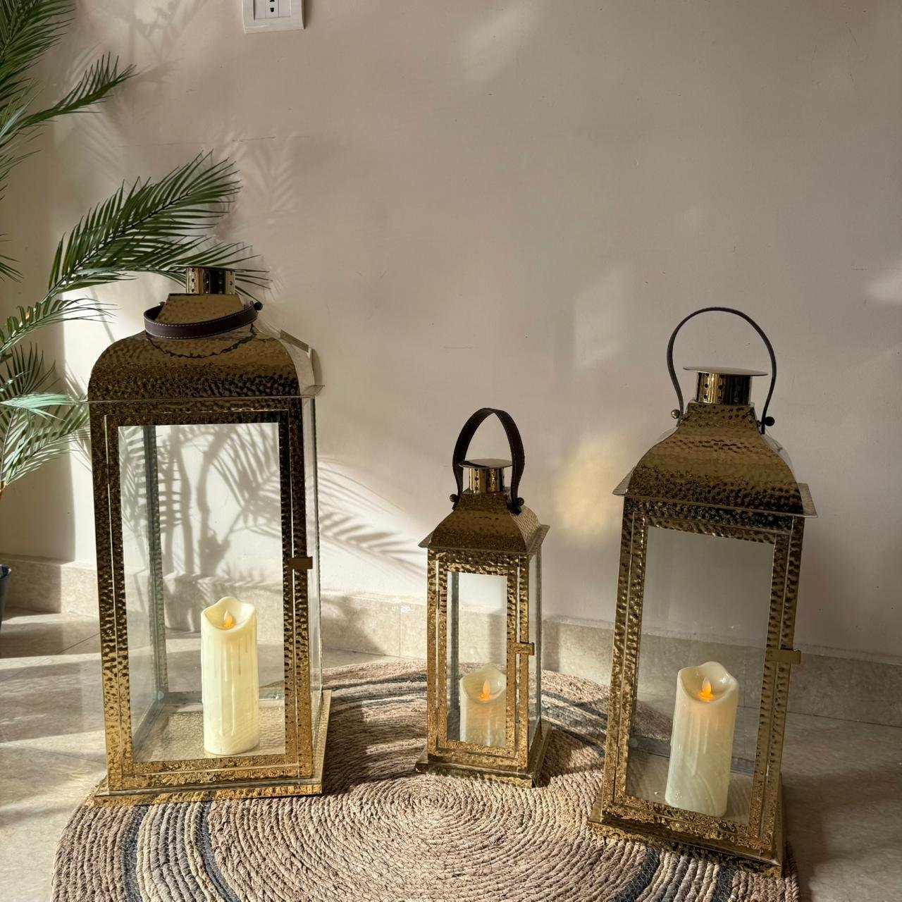 طقم فوانيس معدنية ذهبية 3 قطع