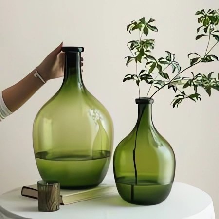 أضف لمسة من الأناقة والفخامة إلى منزلك مع هذه الزجاجة الديكورية الفريدة. مصنوعة من زجاج أخضر عالي الجودة مع تدرجات لونية جميلة تمنحها مظهرًا راقيًا وجذابًا. يمكن استخدامها كقطعة ديكور مستقلة أو كوعاء للزهور الجافة لإضفاء لمسة طبيعية على المساحة. مثالية لغرف المعيشة، المكاتب، أو حتى كهدية فاخرة لمحبي الديكور المميز.