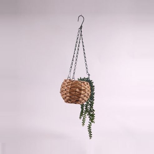 استمتع بديكور أنيق ومميز مع هذا الوعاء المعلق المصنوع بتصميم منسوج رائع. يتميز بخاماته المتينة التي تمنحه مظهرًا طبيعيًا ولمسة دافئة تناسب مختلف أنماط الديكور. يأتي مزودًا بسلسلة معدنية قوية لتعليقه بسهولة في أي مكان داخل المنزل أو في الشرفة والحديقة. مثالي لاستخدامه مع النباتات الطبيعية والصناعية، مما يضيف لمسة خضراء أنيقة لمساحتك دون عناء.