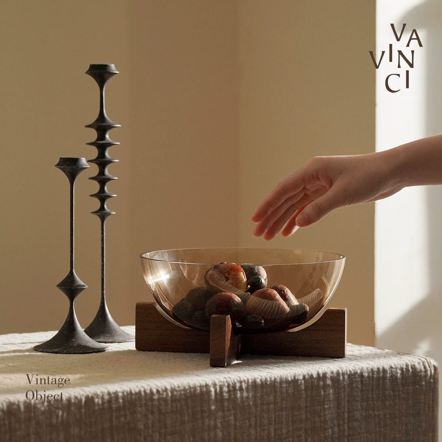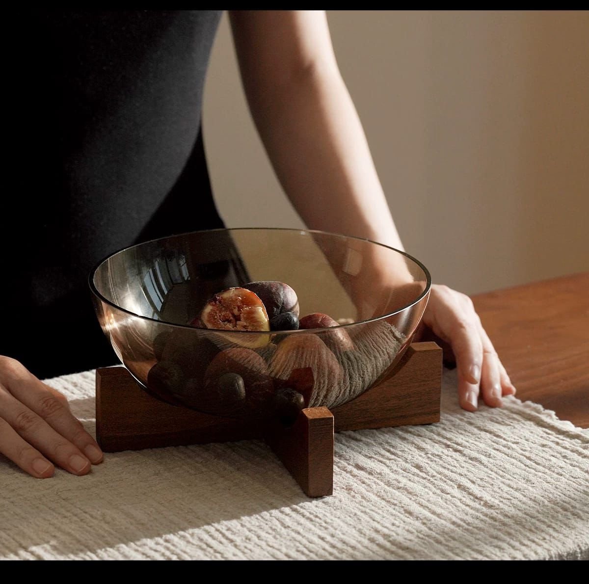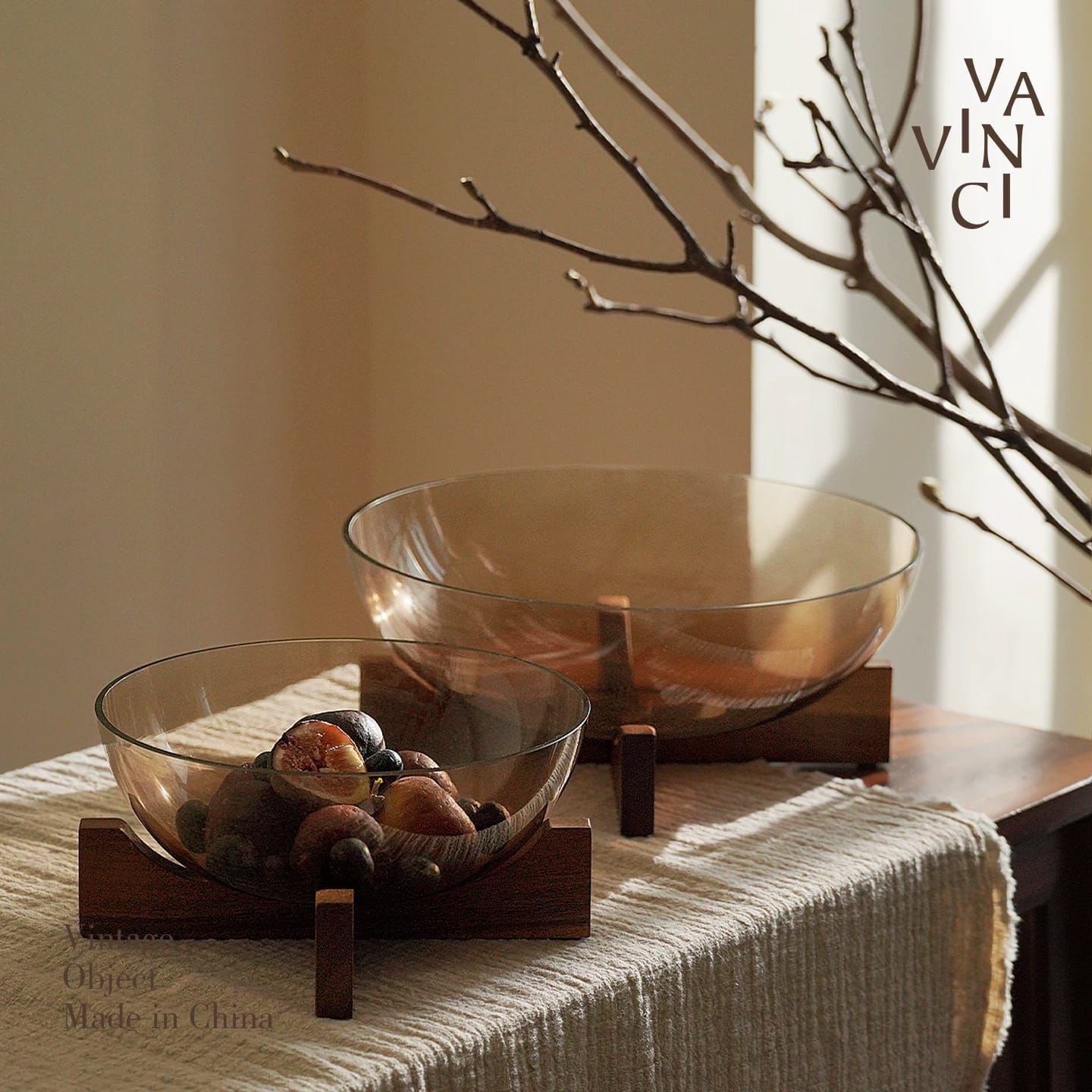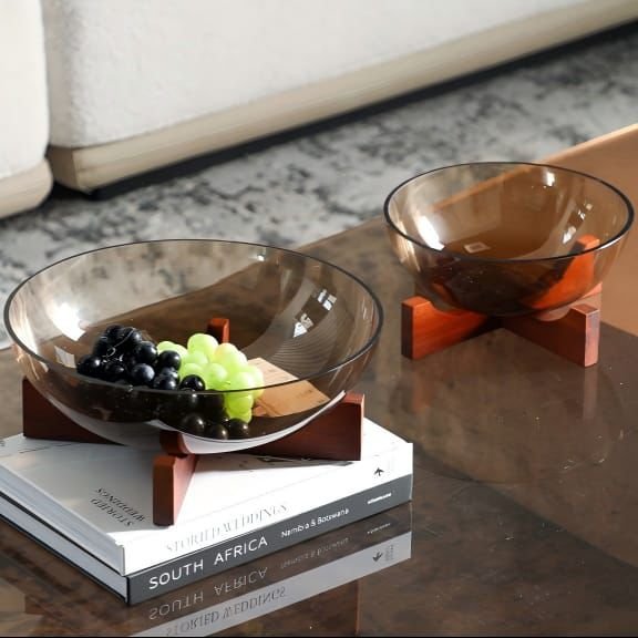 أطباق زجاج أومبرا على حامل خشبى طقم قطعتين