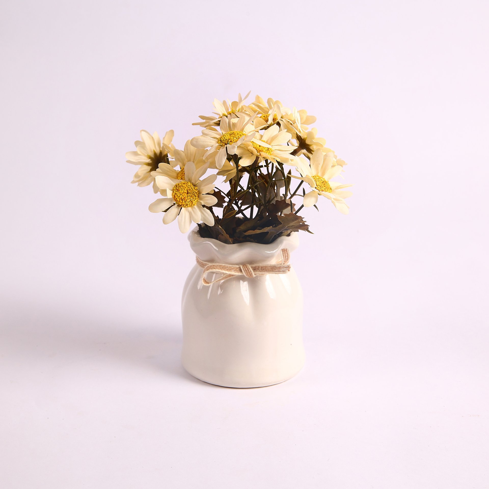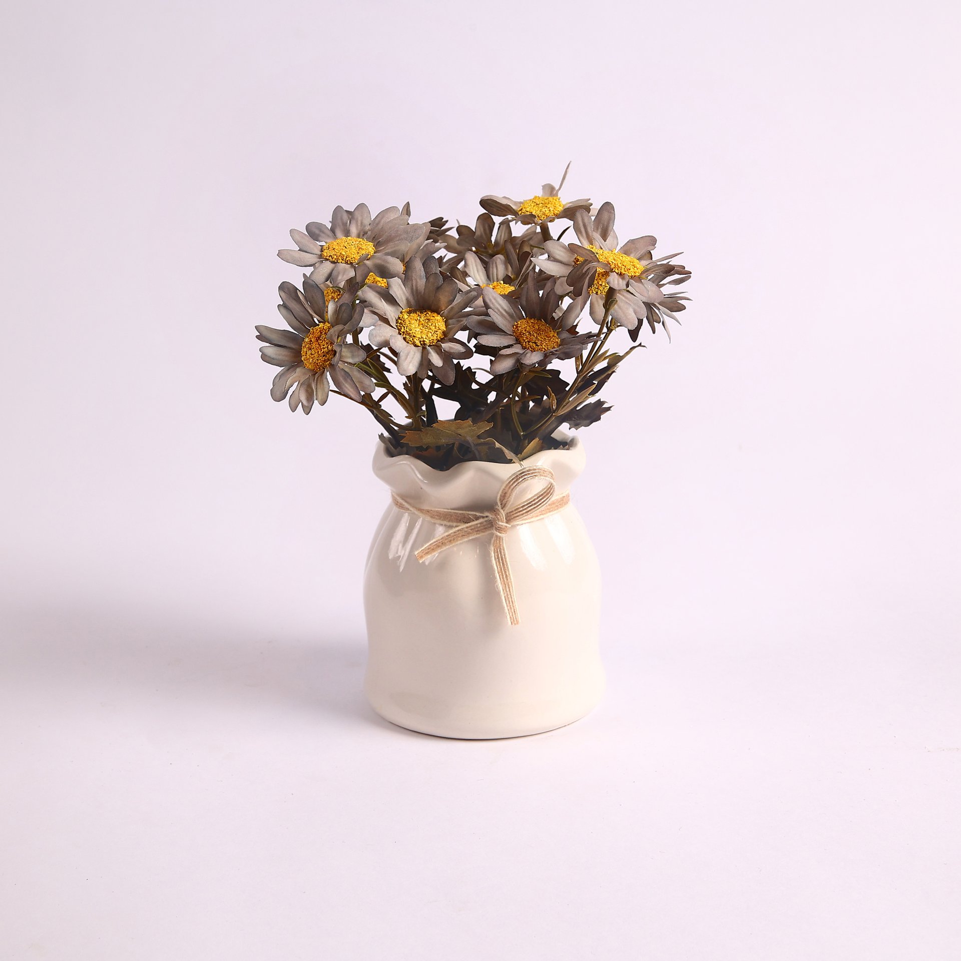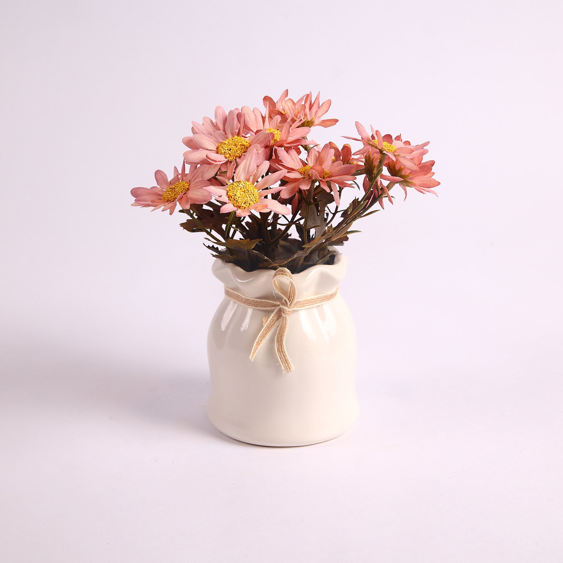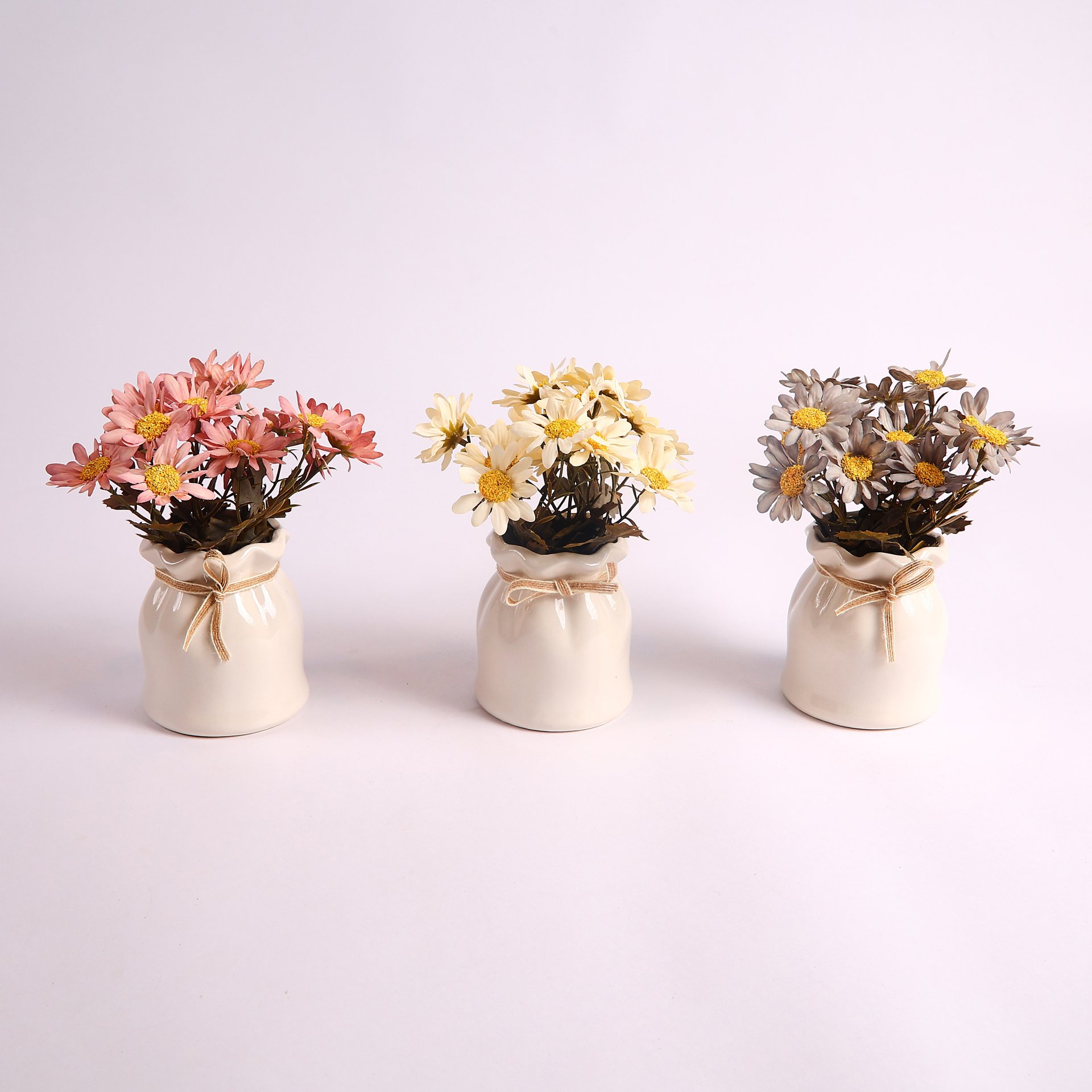 استمتع بجمال الأزهار دون عناء العناية بها مع هذه المجموعة الرائعة من الأزهار الصناعية! تأتي الأزهار بتصميم جذاب وبألوان متنوعة مثل الوردي والأصفر والرمادي، موضوعة في أوعية خزفية أنيقة مزينة بشريط رقيق. تعتبر هذه المجموعة مثالية لإضفاء لمسة من الحيوية والبهجة على أي غرفة، سواء كانت في منزلك أو مكتبك. تجعل من السهل تحقيق ديكور مميز يعكس ذوقك الرفيع دون الحاجة إلى صيانة. أضف لمسة من الجمال من خلال هذه الأزهار الرائعة!