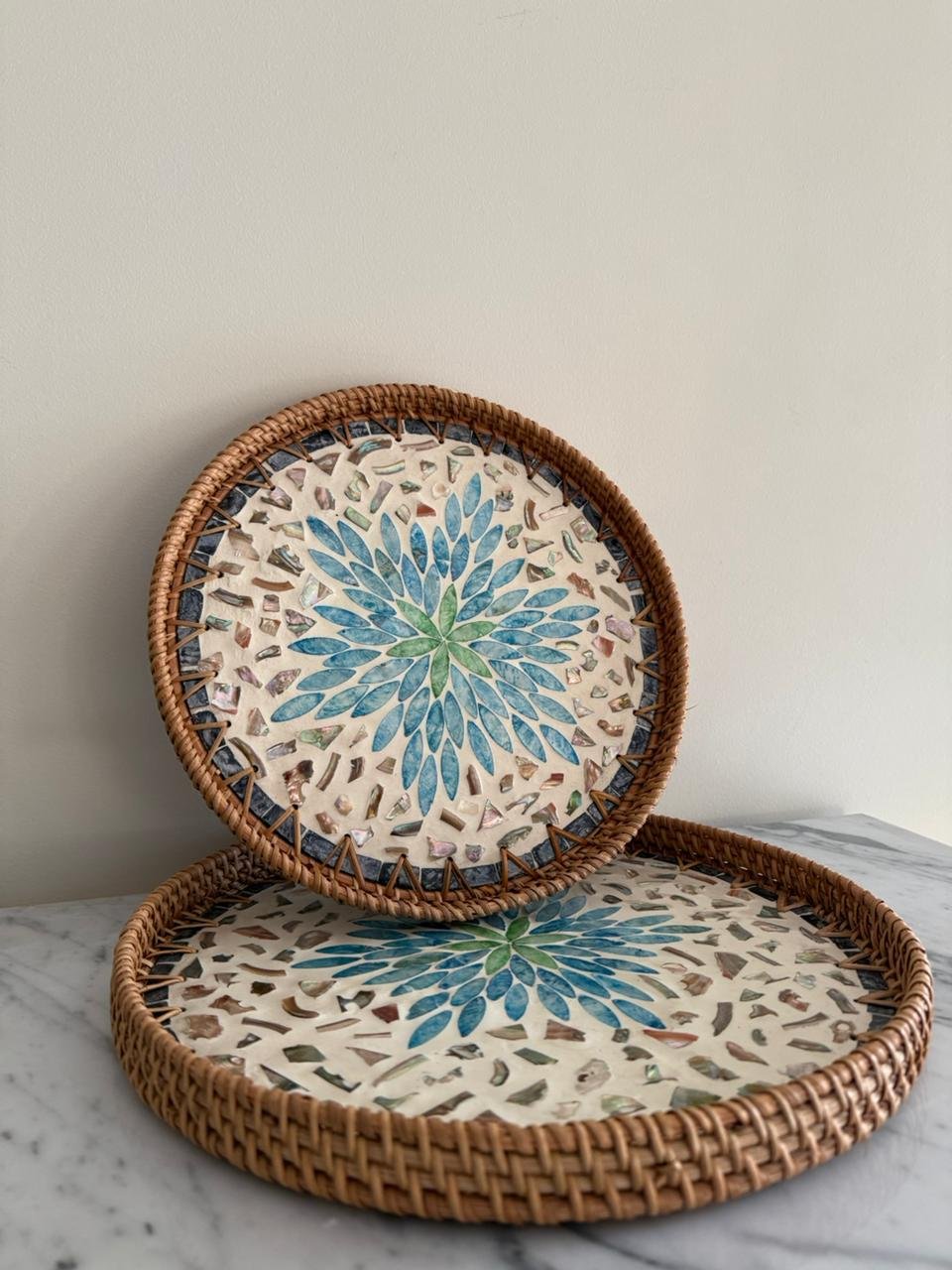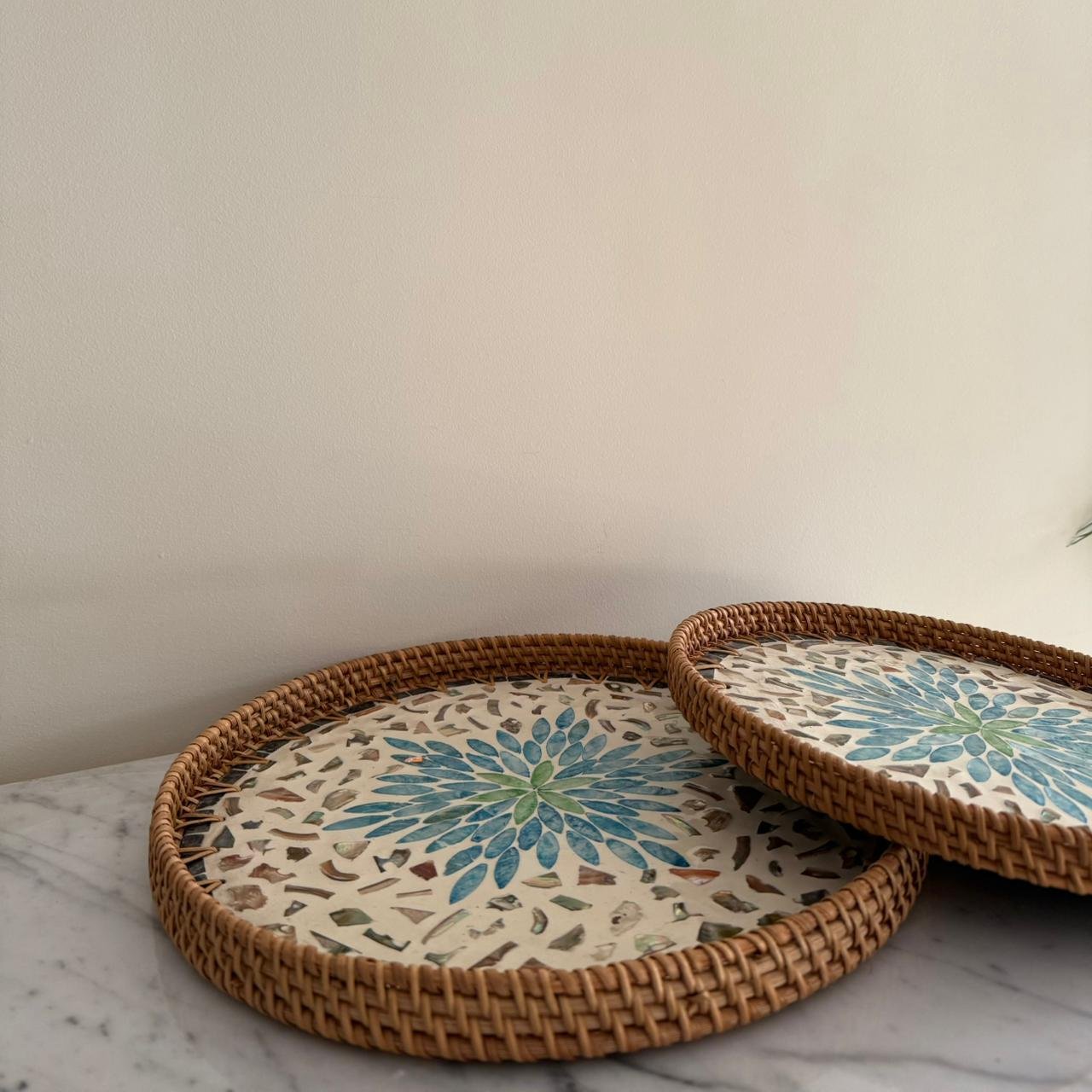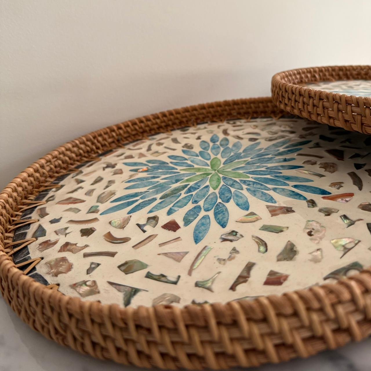 طقم صواني رتان قطعتين