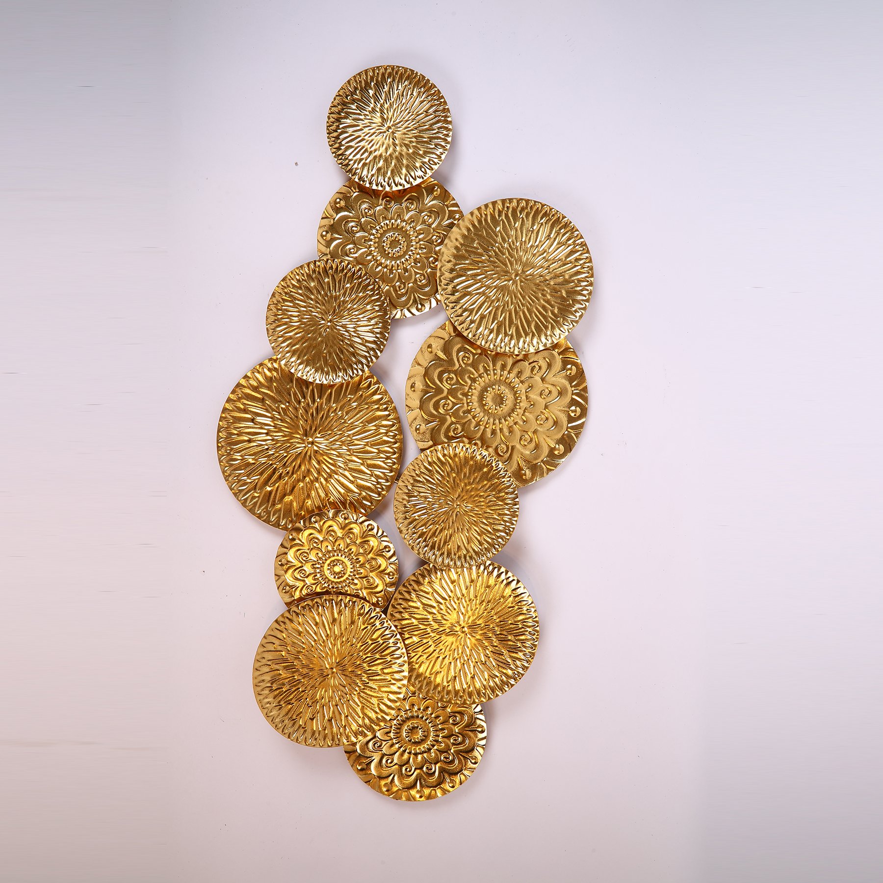 استمتع بالفن والتفرد مع تابلوه الأطباق الذهبية المزخرفة الذي يجمع بين الأناقة والذوق الرفيع. تتضمن هذه المجموعة مجموعة رائعة من الأطباق الدائرية بأحجام متنوعة ونقوش مميزة، مما يمنحك إمكانية تشكيل تنسيق فني رائع على جدران منزلك. مع لمسة من اللمعان الذهبي، يسهل هذا التابلوه الانسجام مع أي ديكور داخلي ويزيد من الإضاءة والجمالية في المساحات. يمكنك استخدامه في غرفة المعيشة، المدخل، أو حتى في غرفة الطعام ليكون نقطة محورية تعكس ذوقك الفاخر.