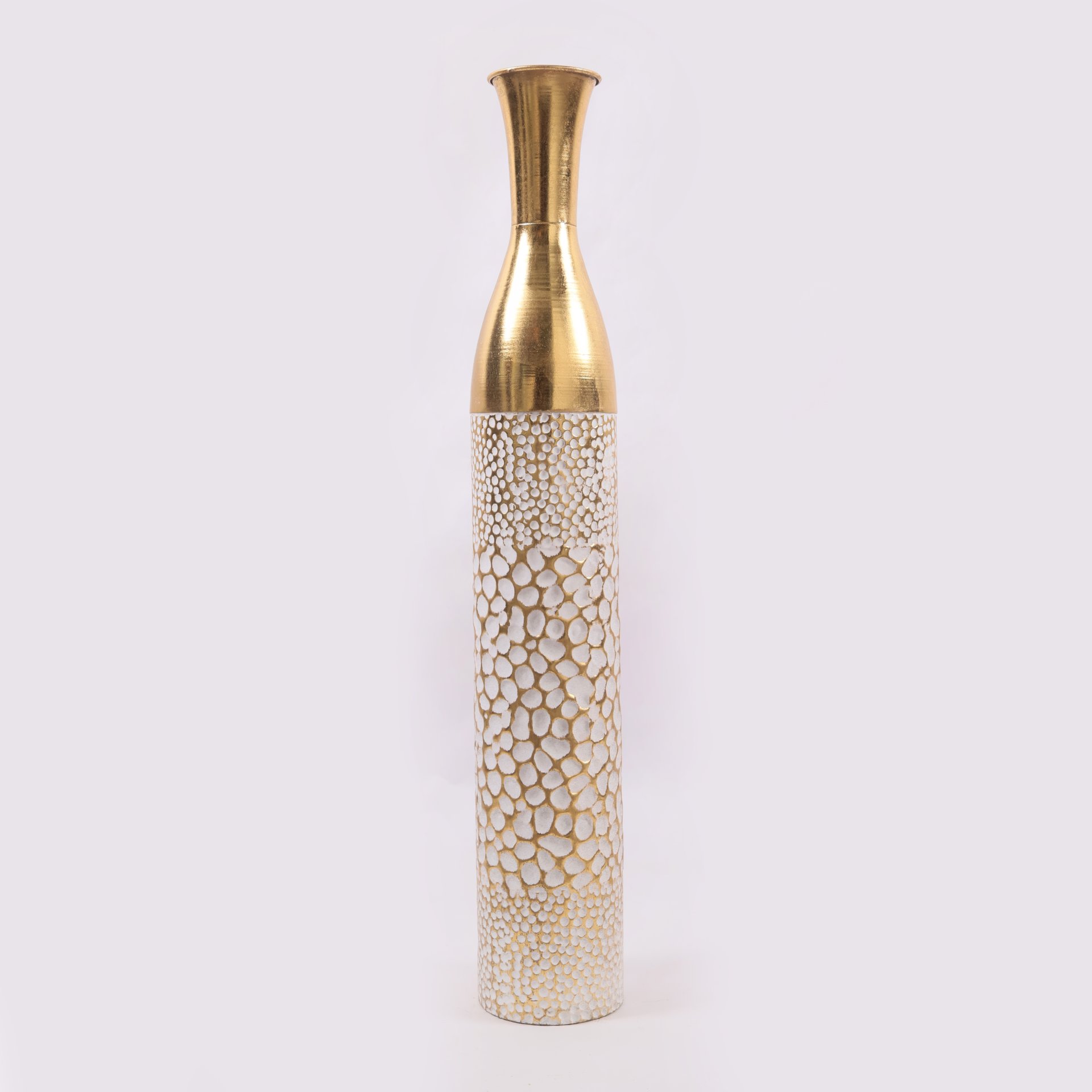 فازة ديكورية معدنية طويلة بلون ذهبي وأبيض