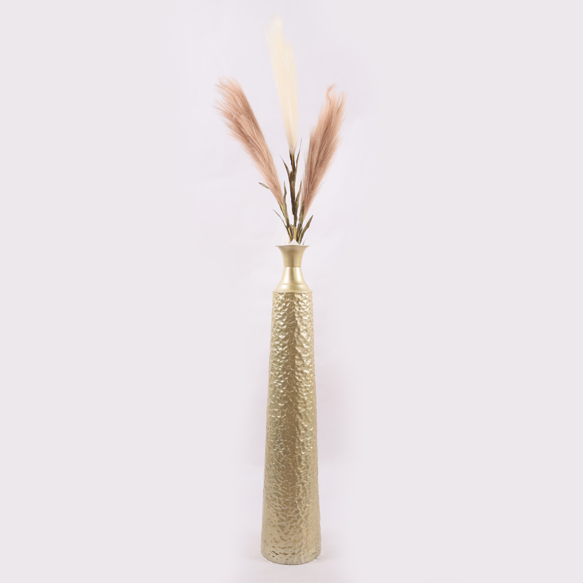 فازة معدنية طويلة مطرزة باللون الذهبي بدون ورد