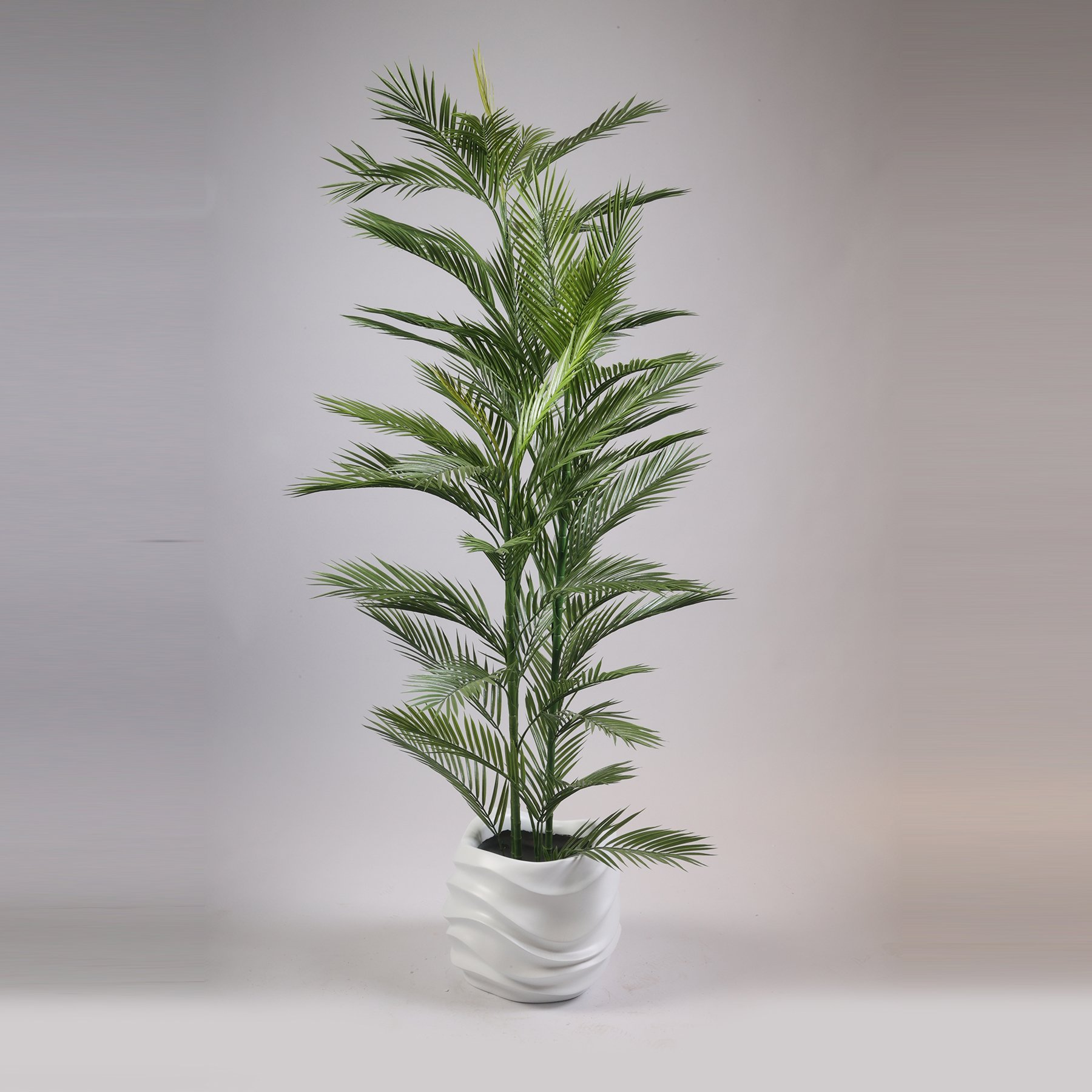 The imported artificial Areca palm tree is distinguished by its stunning beauty and amazing realism. Its leaves are thin and long, made of high-quality materials to look exactly like the real thing. The tree trunk is brown and has a natural wooden texture. Its elegant design makes it suitable for various decors, whether modern or classic. The artificial Areca palm tree does not need any sunlight, water, or pruning, making it ideal for places where it is difficult to maintain natural plants. Whether you want to add a touch of greenery to your office or to a quiet corner of your home, the artificial Areca palm tree will be an ideal choice.