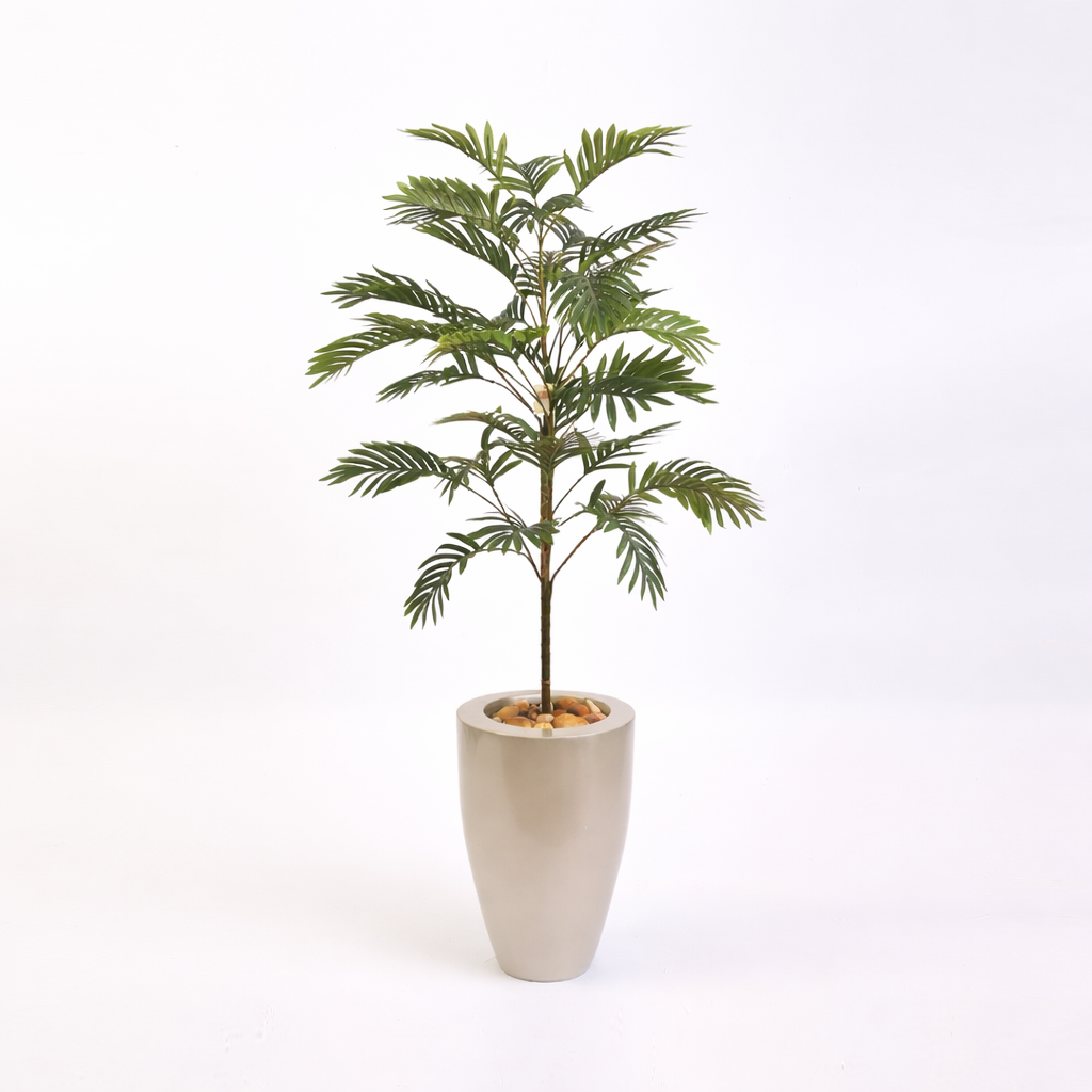 "Enhance your space with a sophisticated tropical vibe using this premium artificial palm tree. Designed with realistic leaves and an elegant structure, it brings a fresh and natural ambiance to your décor. Planted in a modern pot with decorative stones, it is a perfect choice for home interiors, offices, restaurants, and hotels. Enjoy the beauty of greenery without the hassle of watering or maintenance!"
