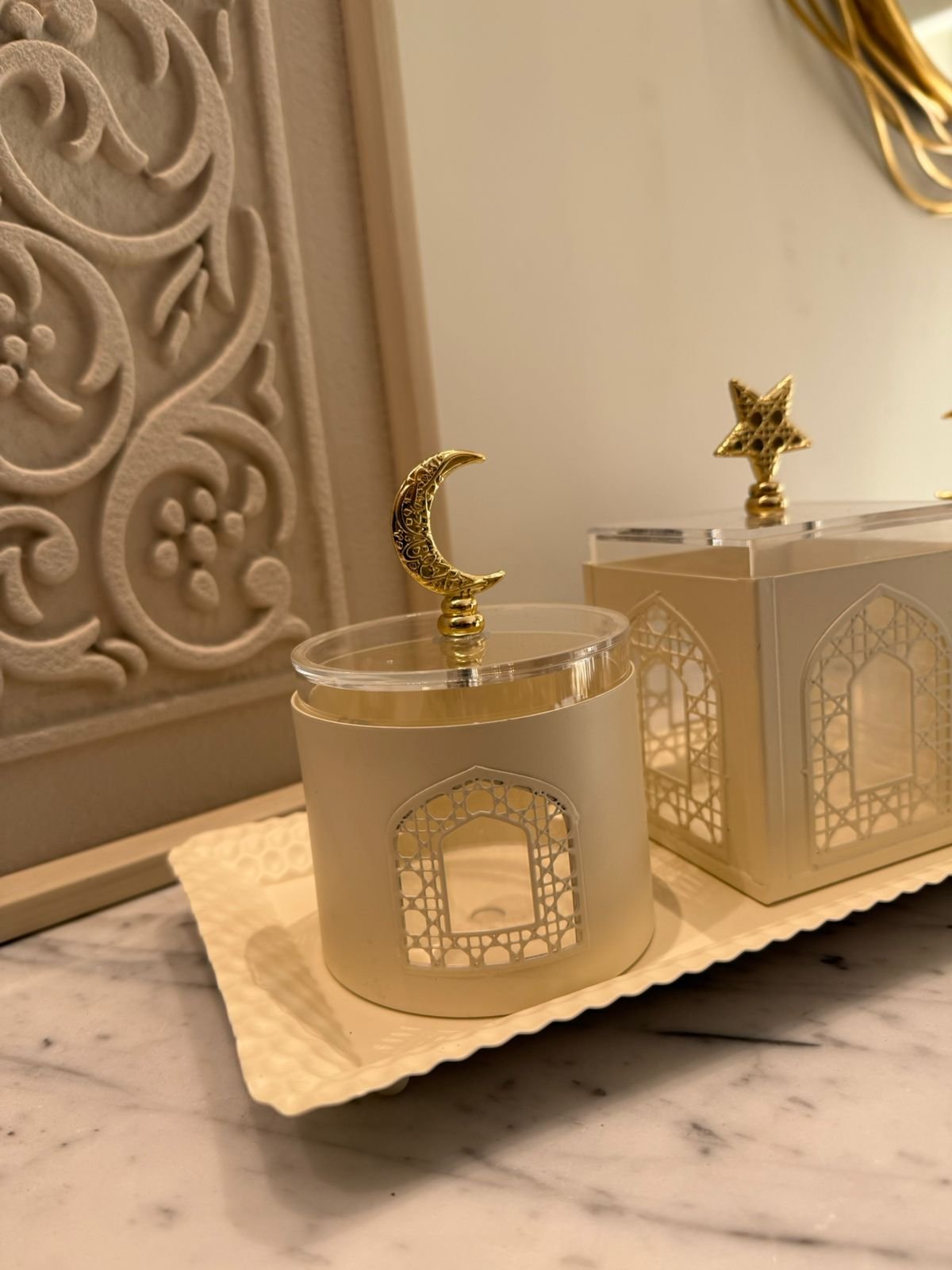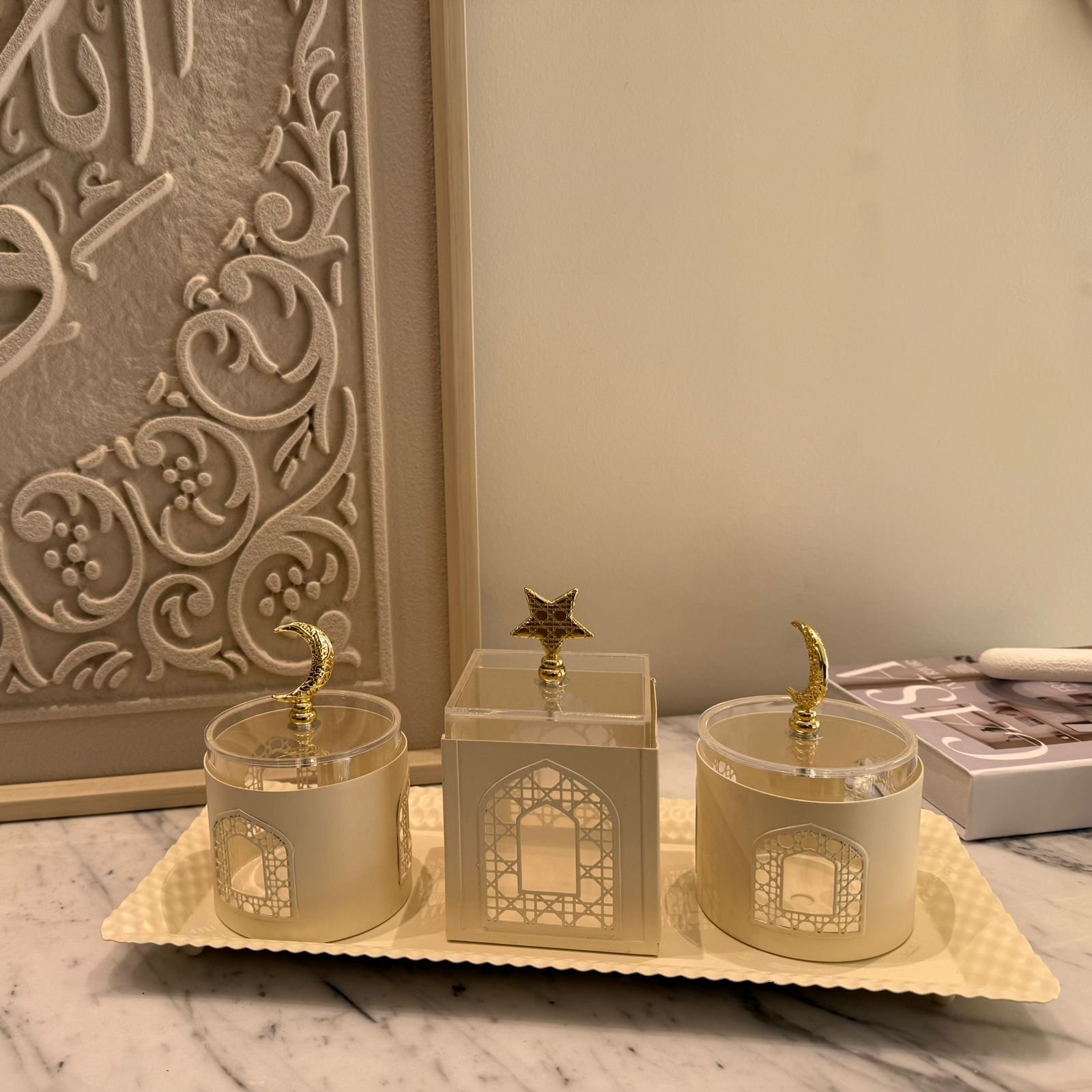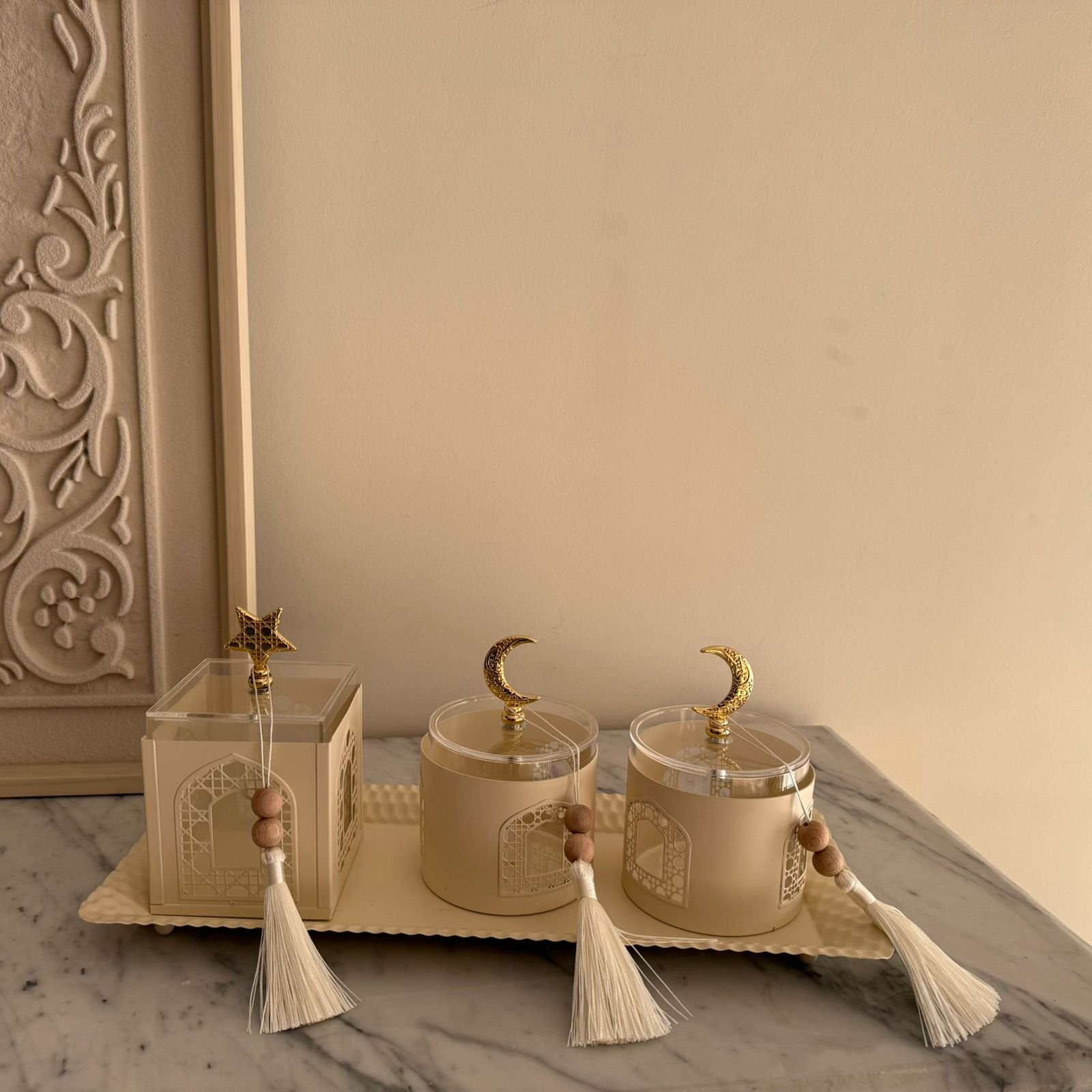 Metal Date dishes with Oriental details set of 3