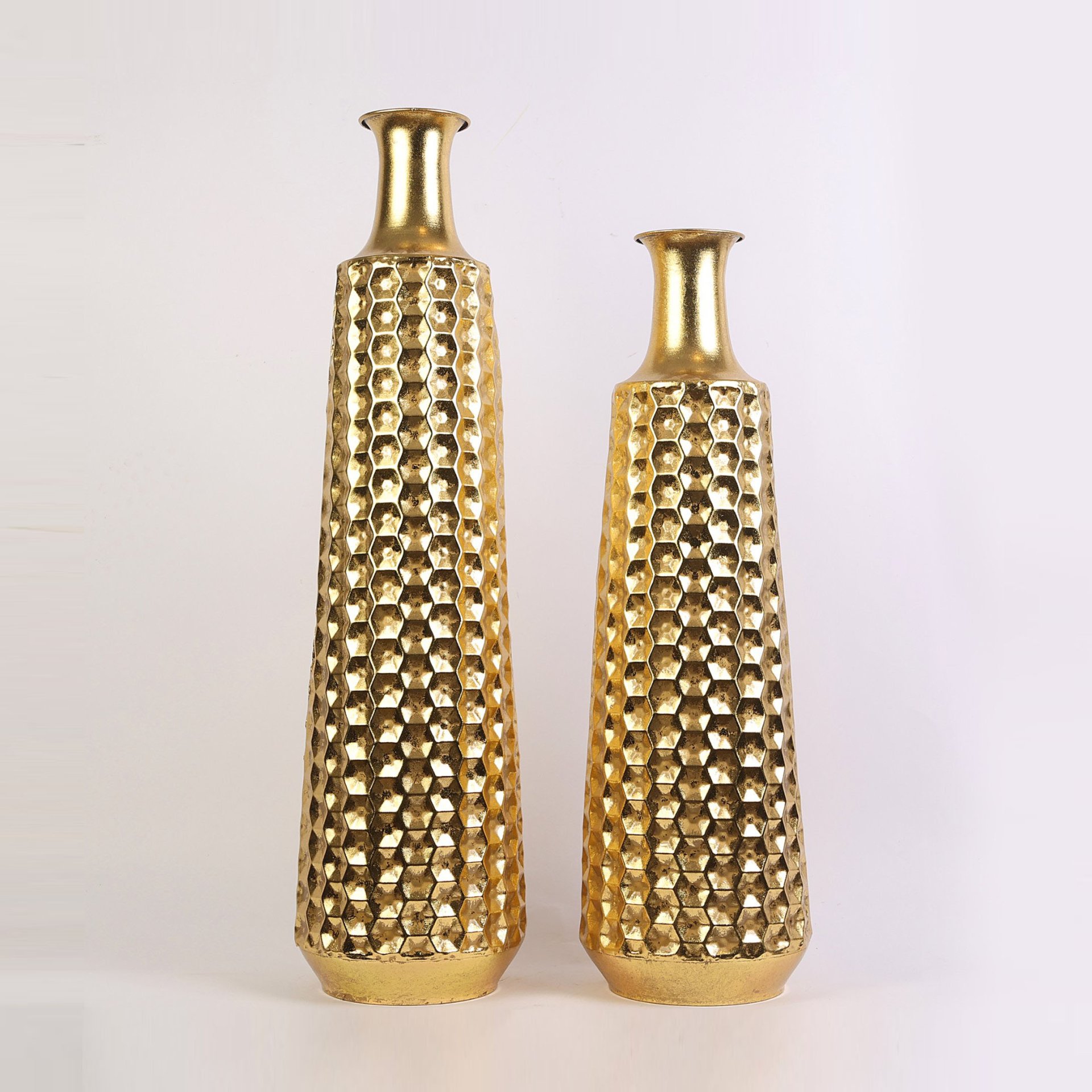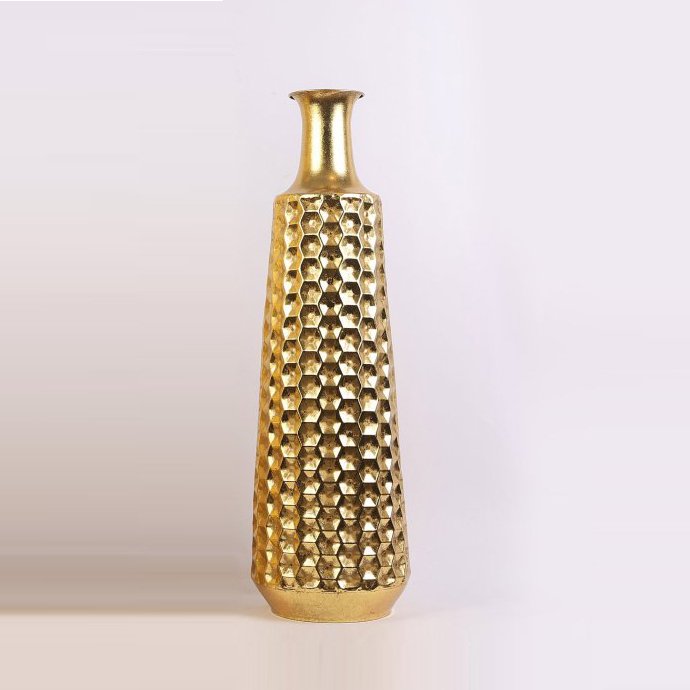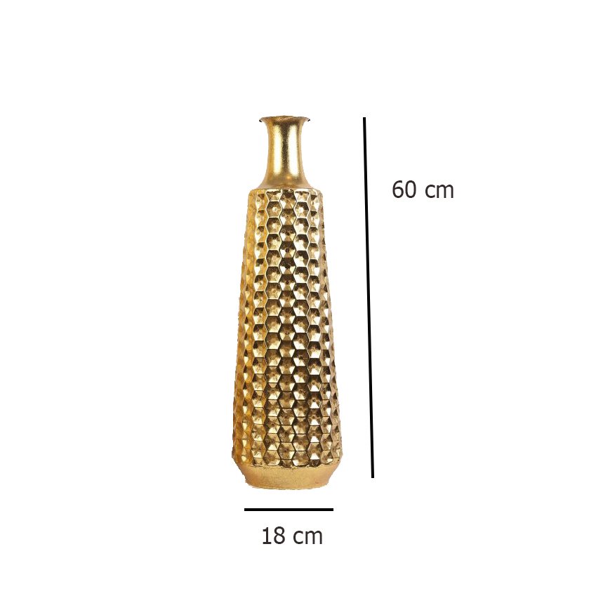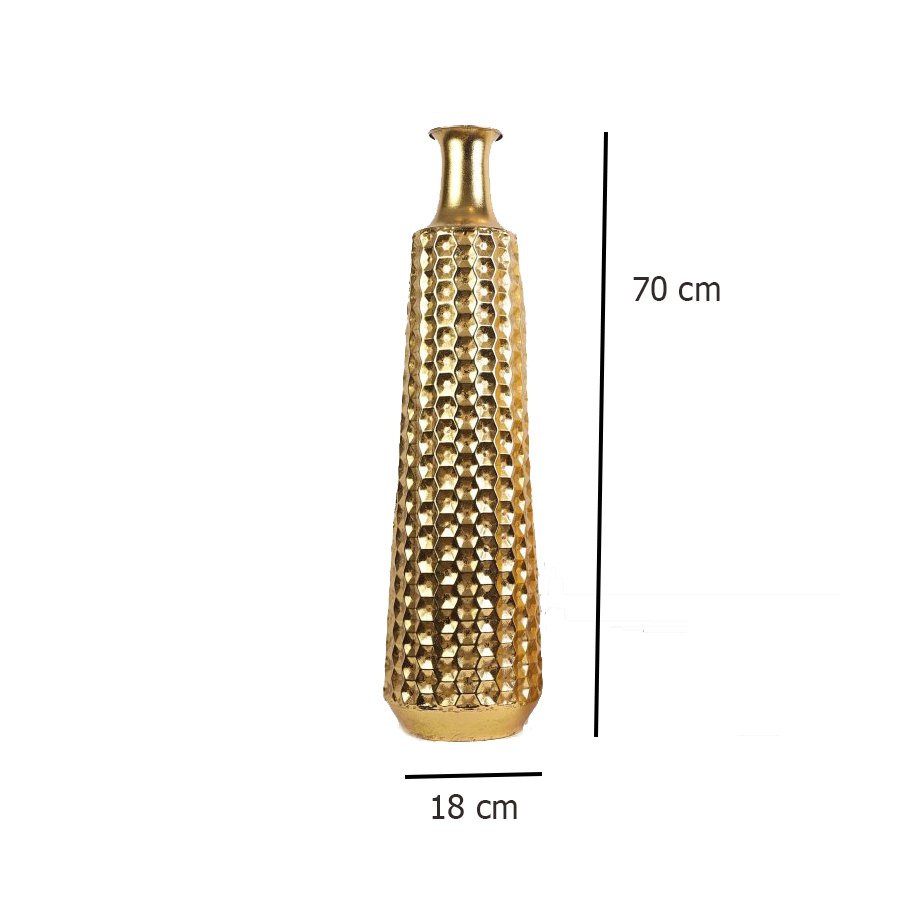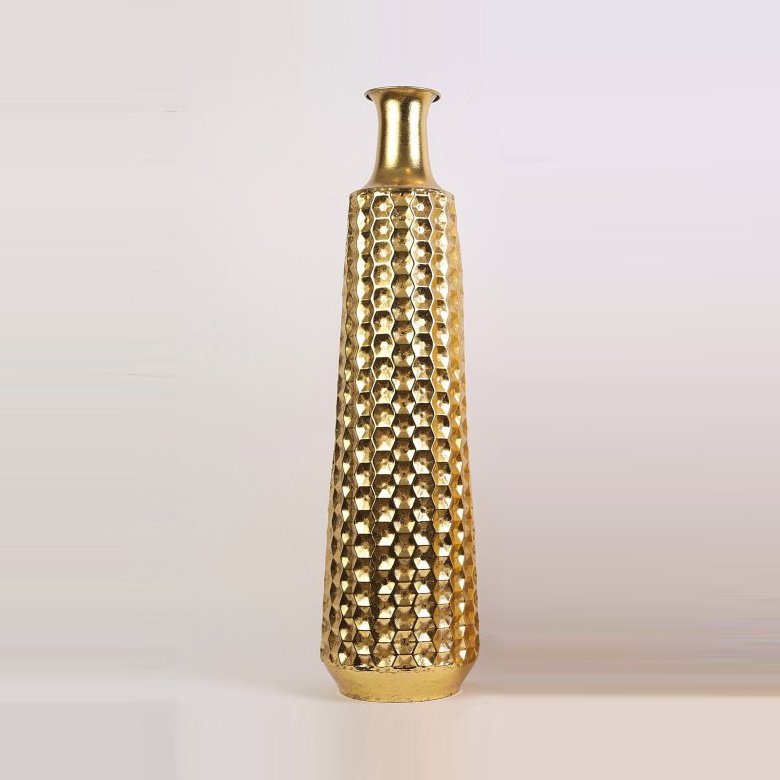 A luxurious floor vase crafted from high-quality metal, designed with a modern and attractive design. This large vase is ideal for placing on the floor, making it ideal for decorating large rooms, reception halls, or even outdoor spaces. It features a modern and elegant design that suits a variety of tastes, adding a touch of modernity and luxury to any décor. It can be used to arrange tall flowers or as a standalone decorative piece. It's the perfect addition to any space you want to add a contemporary touch.