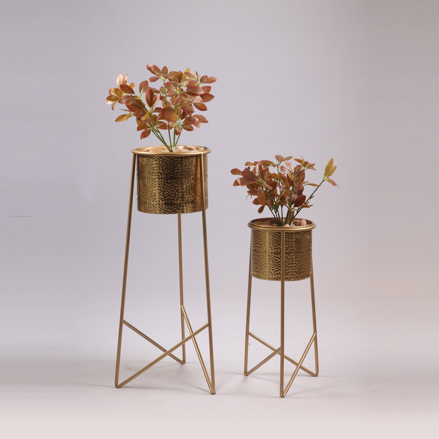 A meticulously crafted metal planter made from high-quality materials, combining durability and elegance. Its contemporary design seamlessly blends with various interior and exterior decors. It can be used to cultivate a wide range of plants, whether indoor or outdoor. The metal planter provides protection for plants and adds a touch of nature to any location.