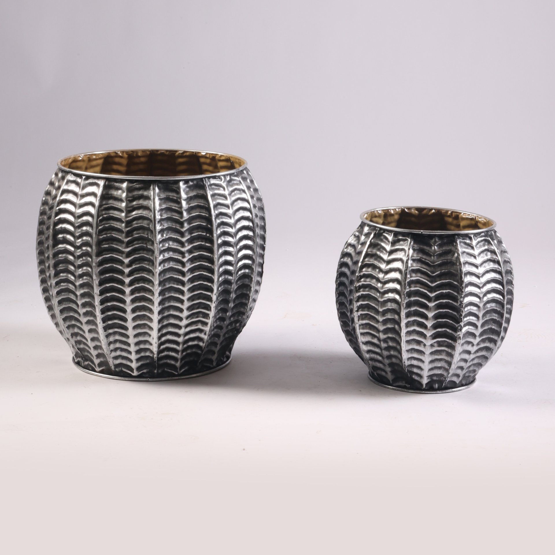 A meticulously crafted metal planter made from high-quality materials, combining durability and elegance. Its contemporary design seamlessly blends with various interior and exterior decors. It can be used to cultivate a wide range of plants, whether indoor or outdoor. The metal planter provides protection for plants and adds a touch of nature to any location.