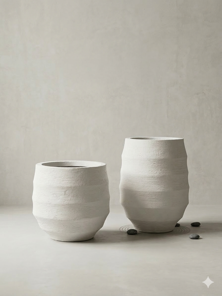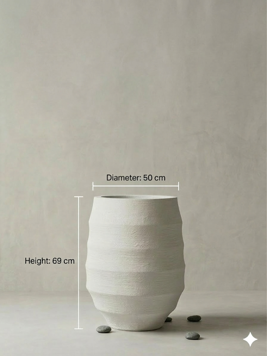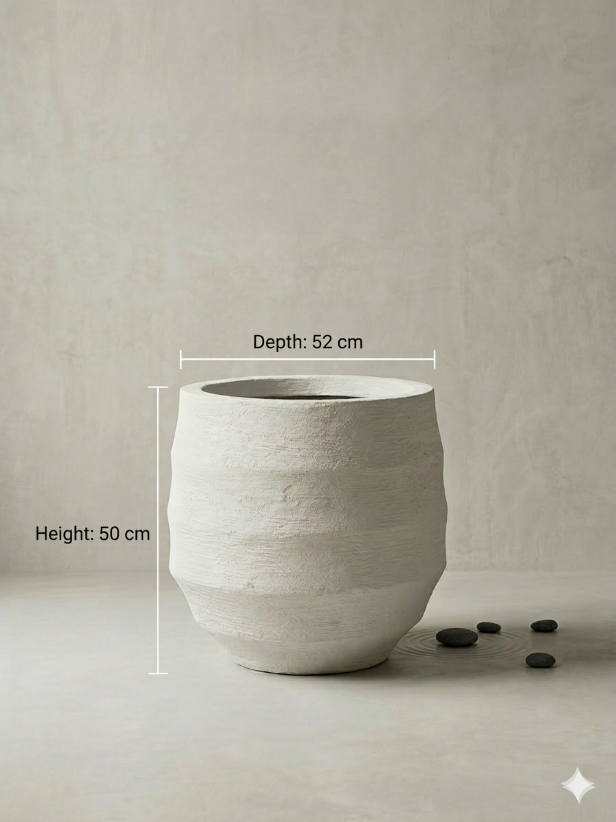 A unique decorative planter inspired by natural rock formations, combining simplicity with modern luxury. Its irregular textured surface mimics the look of natural stone, creating a sculptural piece that enhances villas, gardens, entrances, and contemporary interiors.