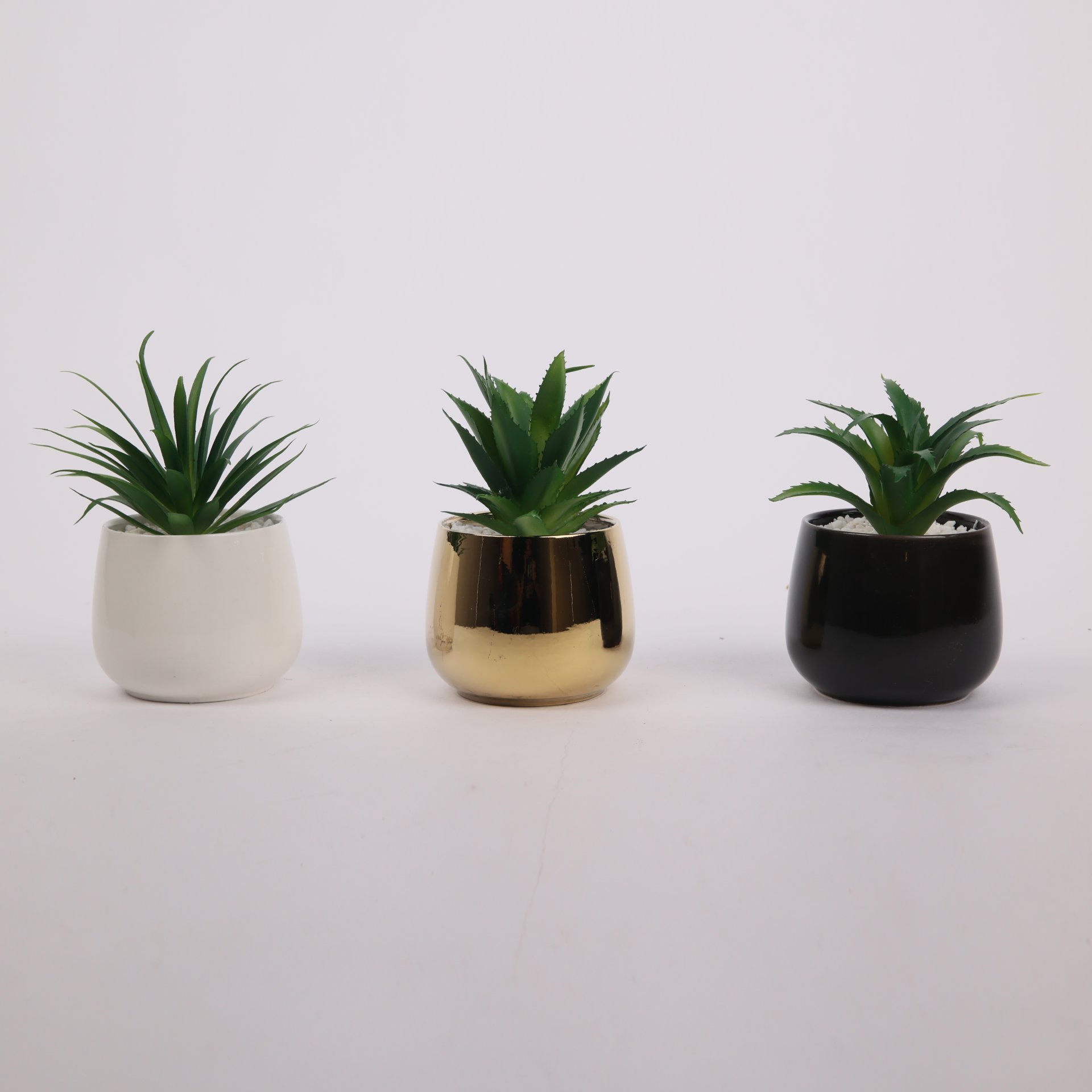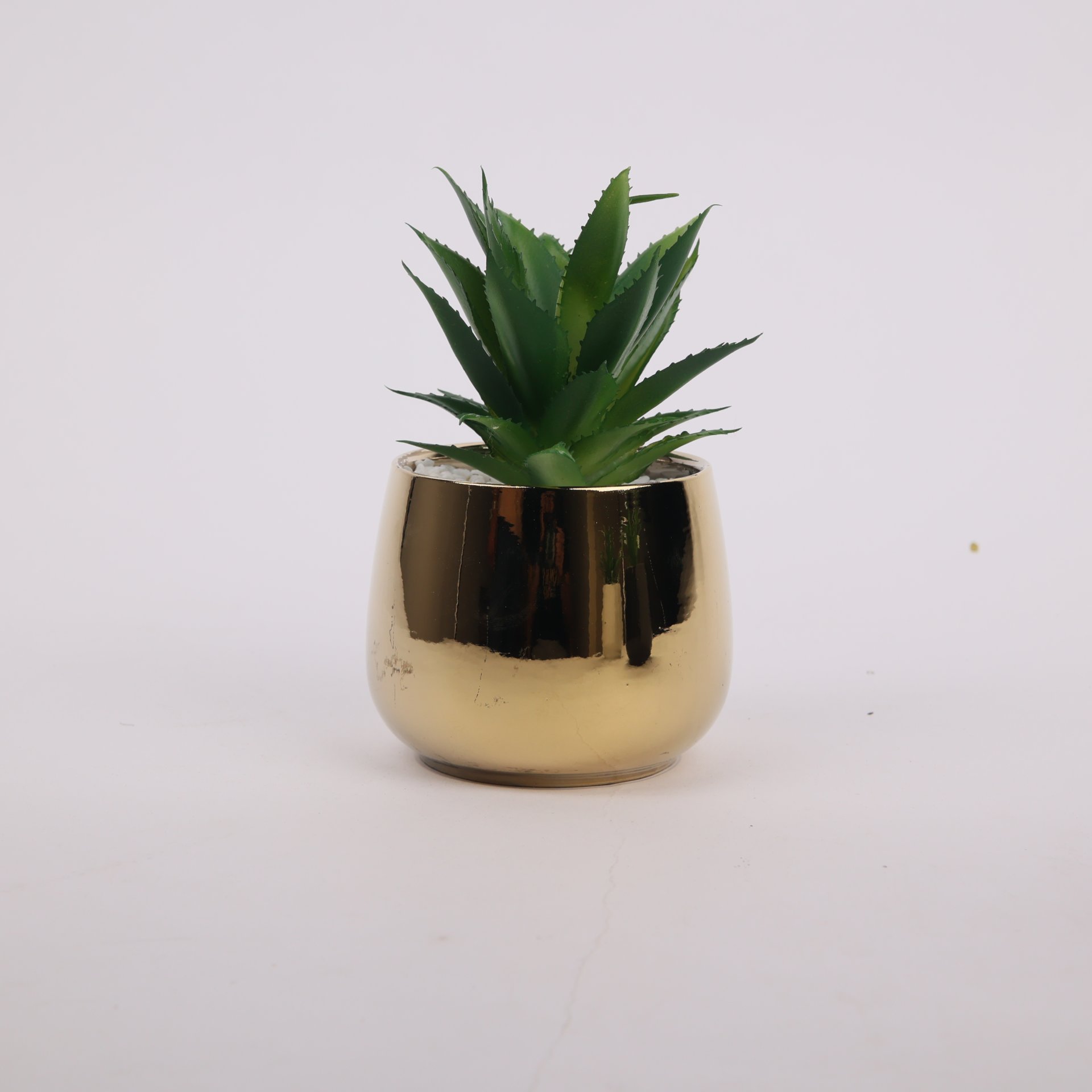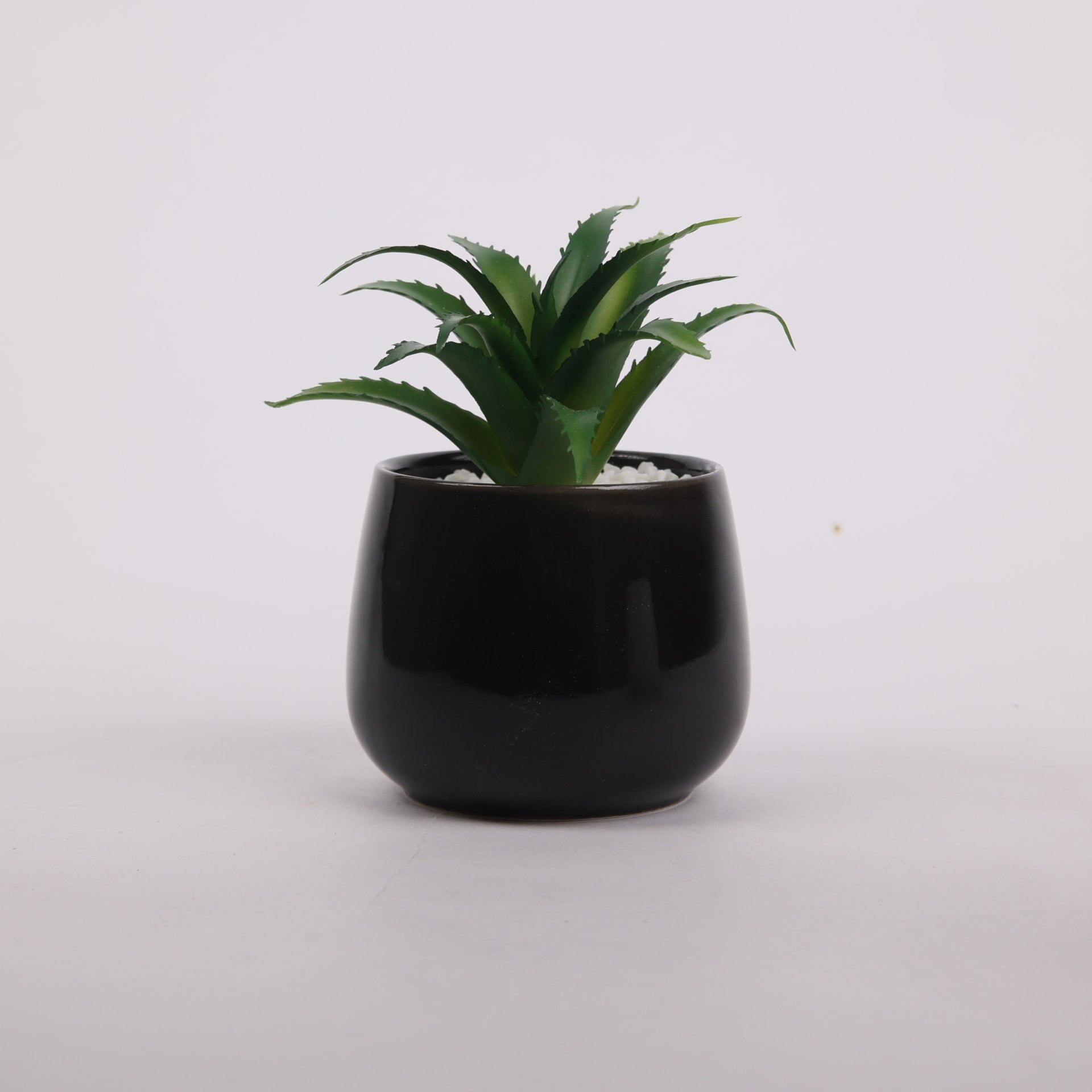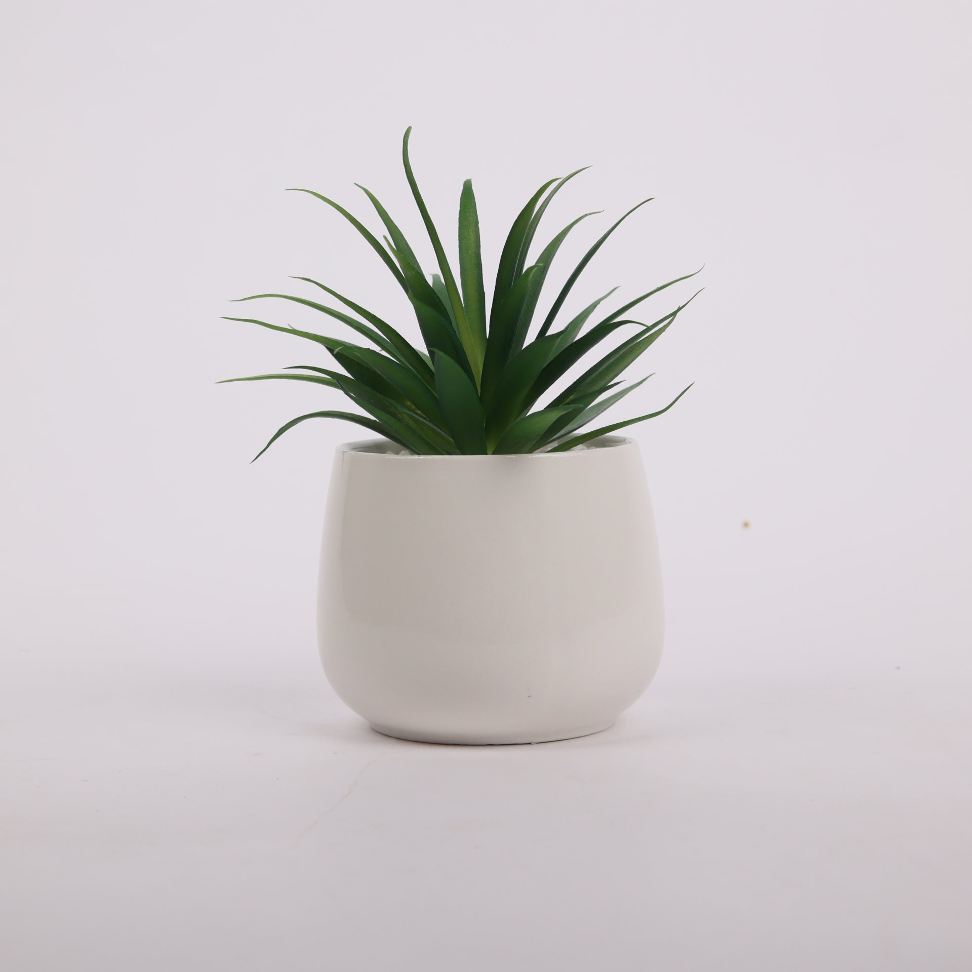 An elegant artificial plant placed in a modern decorative vase, designed to bring a refined natural charm to any interior. With its realistic green foliage and stylish vase design, this piece is perfect for enhancing desks, side tables, or shelves, adding freshness and timeless elegance without the need for maintenance.