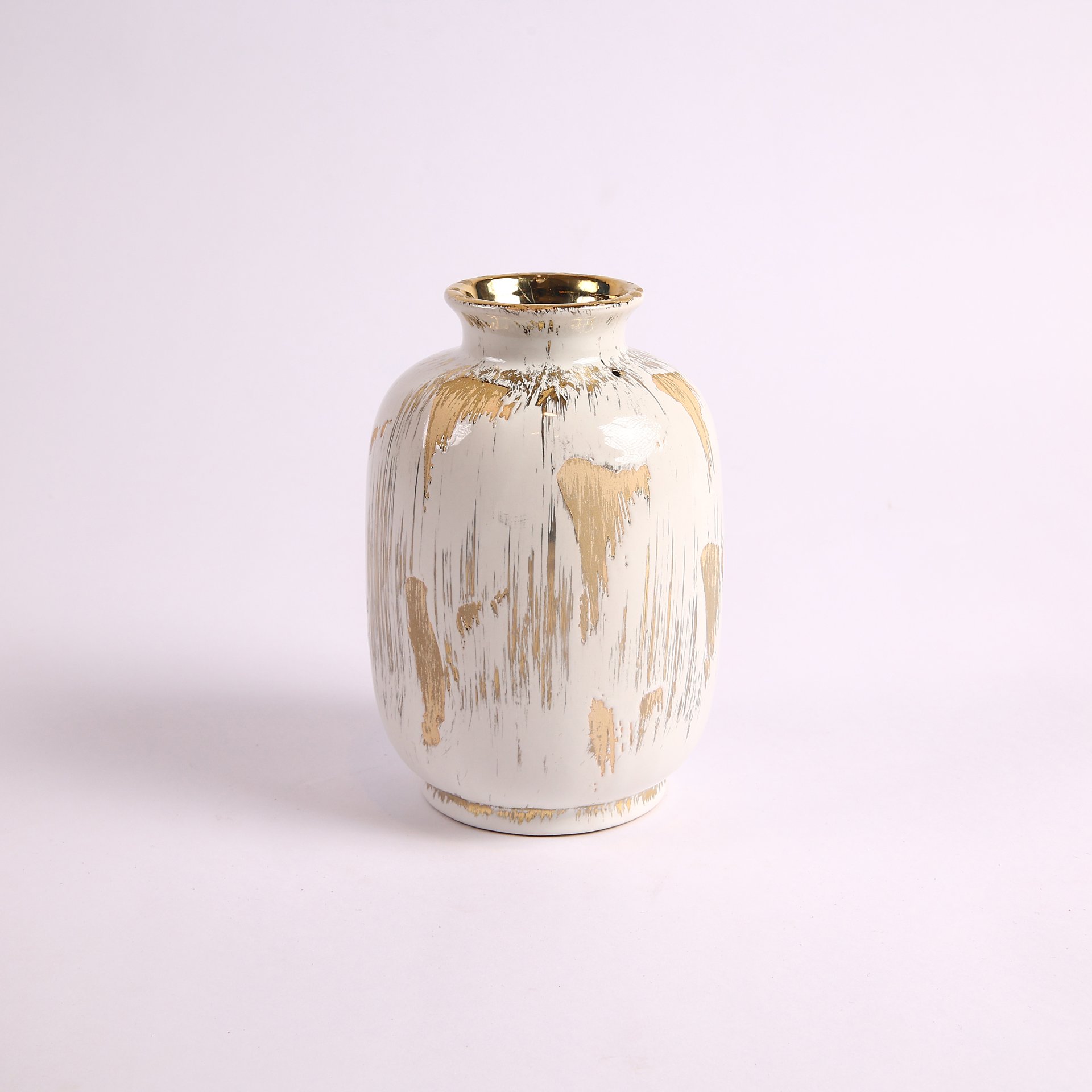 Enhance your home with this exquisitely crafted porcelain vase. Featuring a luxurious vintage design, it blends soft white tones with scattered golden accents in an artistic finish. Perfect for decorating tables, shelves, or as a standalone statement piece.