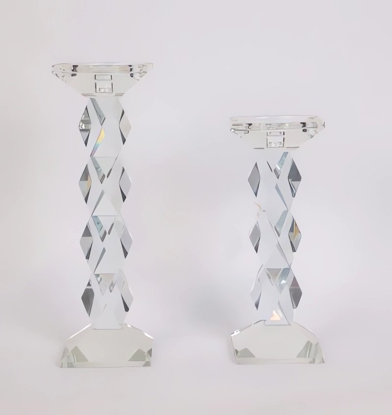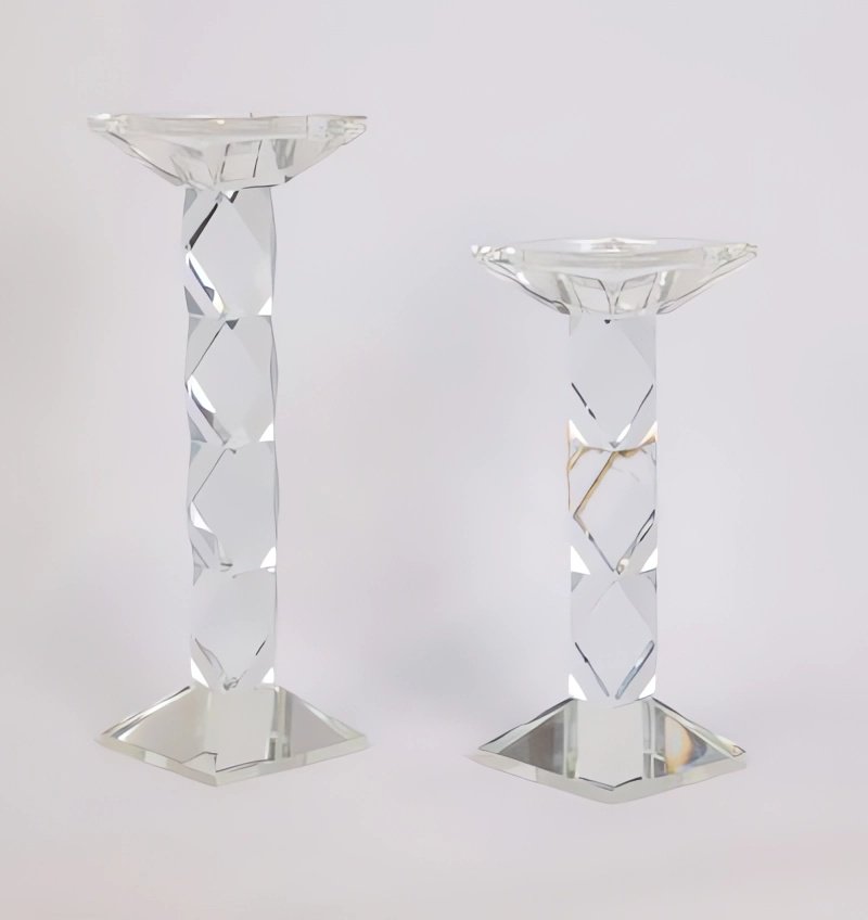Enhance your modern decor with this stunning set of crystal candle holders. Featuring sleek, transparent geometric designs, they illuminate any space with a luxurious appearance. Made from high-quality crystal, these holders beautifully reflect light, making every moment feel more special. Ideal for special occasions like parties or as part of your daily home decor, they add a touch of elegance and refined taste. These candle holders bring an element of charm and allure, making them an excellent choice for anyone who loves to decorate their living spaces in innovative ways.