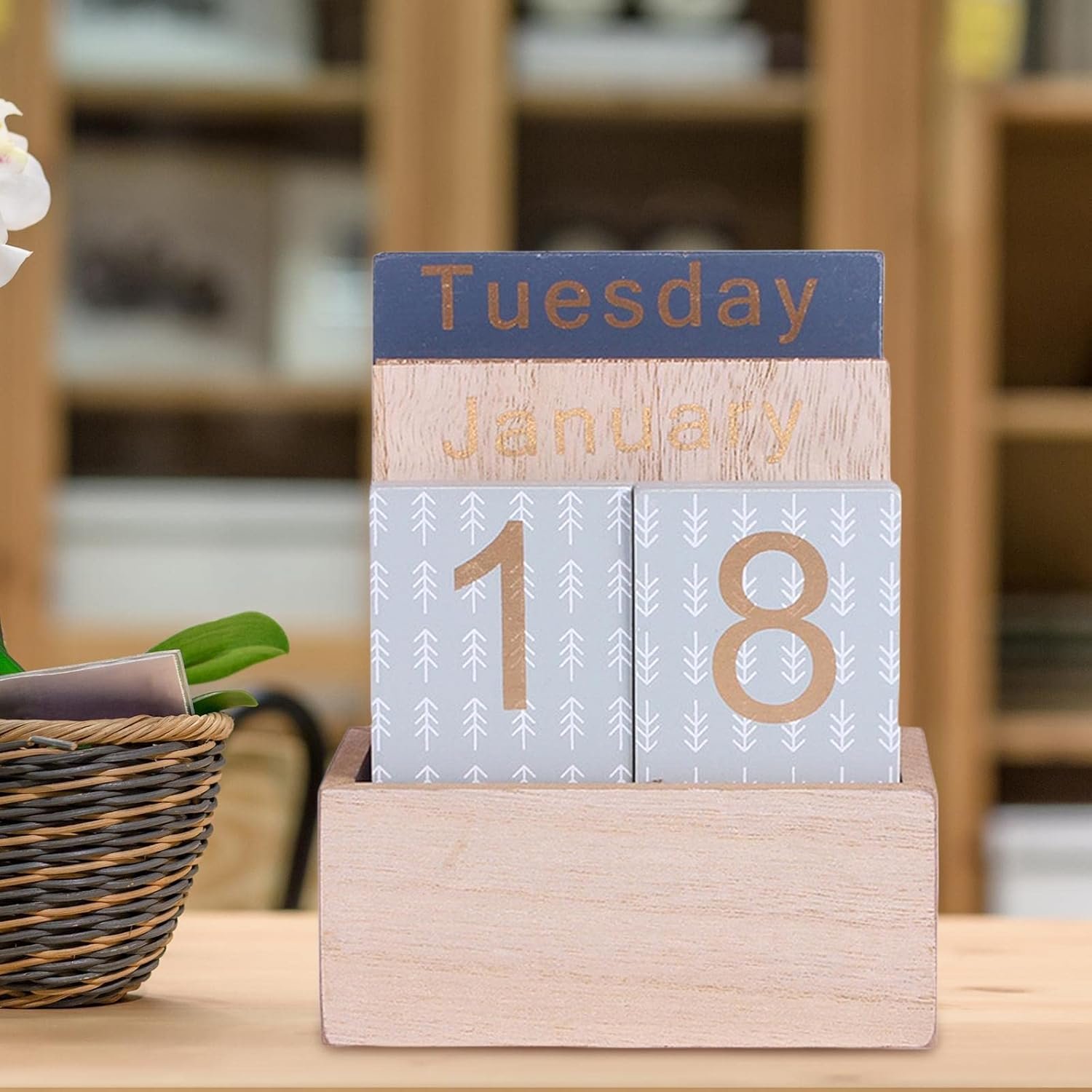 Add a charming touch to your desk or home with this beautiful, reusable wooden block calendar. Crafted from high-quality wood, it features blocks for days, months, and dates that you can rotate manually. Its minimalist and elegant design makes it a perfect decorative piece for any interior space. No batteries or electronics needed — just enjoy a fresh start every morning by updating the blocks.